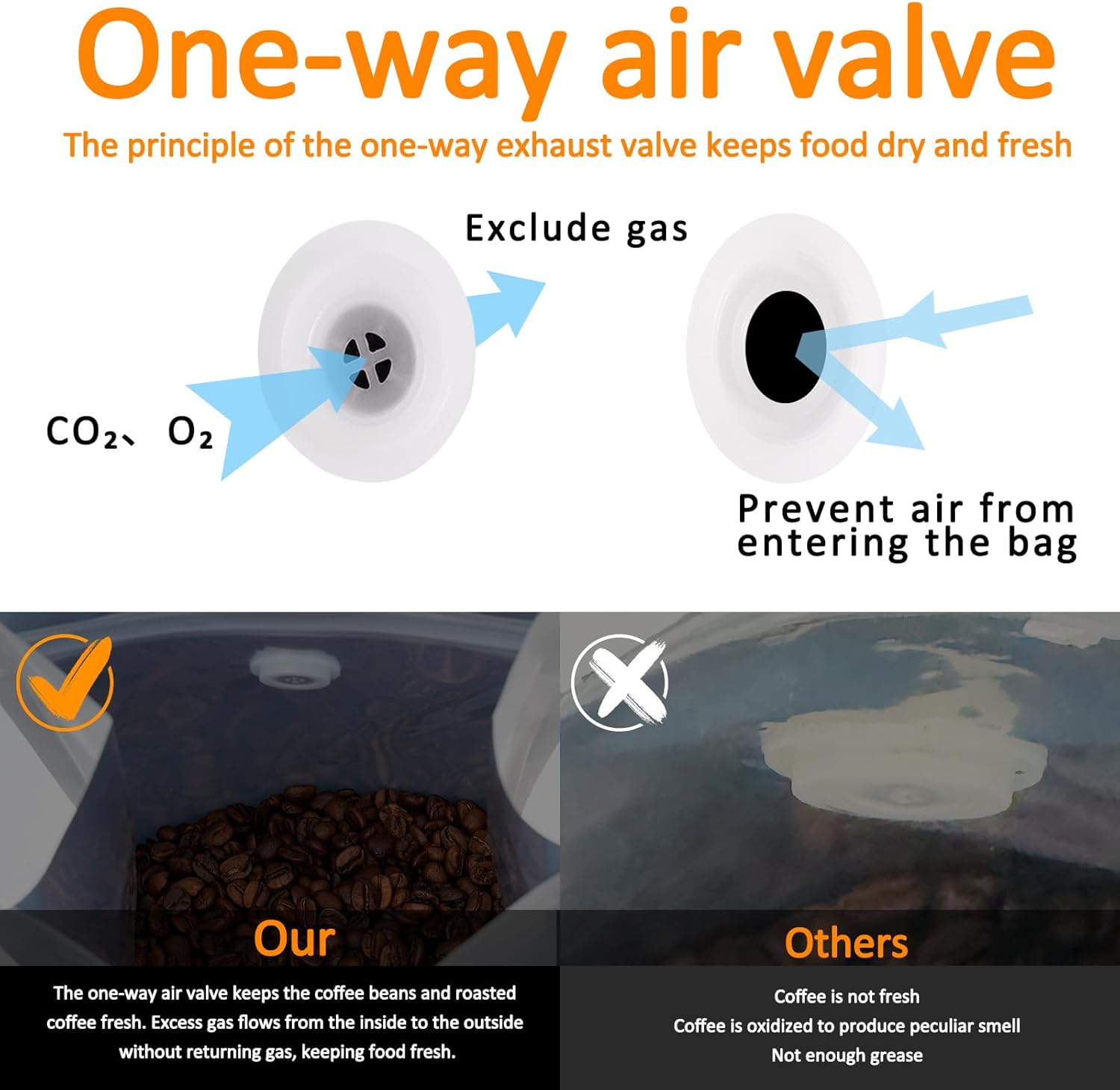 - 【With one-way air valve】The one-way air valve keeps the coffee beans and roasted coffee fresh. Excess gas flows from the inside to the outside without returning gas, keeping food fresh.