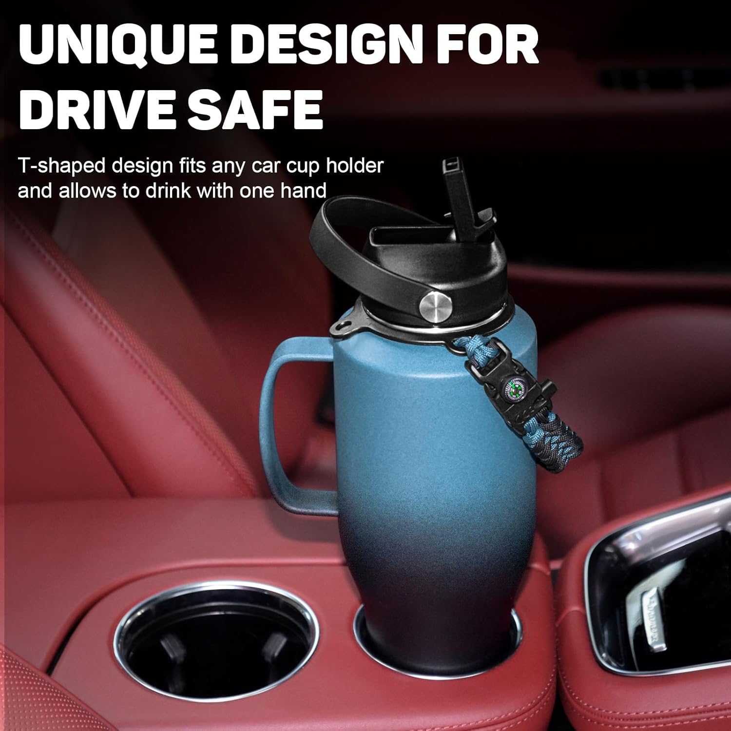 - 【VERSATILE FOR ANY OCCASION】ABOTOCUP insulated water bottle provide a different drinking experience with two lids that are fully leak-proof and designed for effortless drinking. Perfect for any indoor and outdoor activities. Come with ergonomic handle and Paracord handle with compass, safety ring that built for the toughest.
