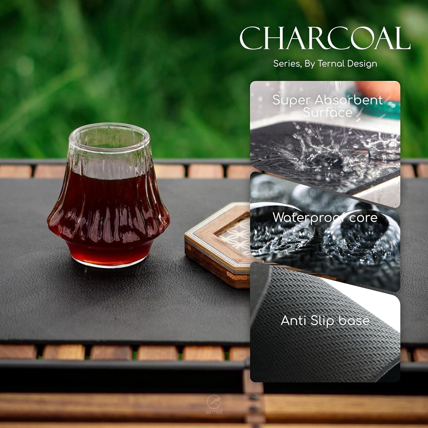 Ternal Coffee Bar & Dish Drying Mat | Rubber-Backed, Anti-Slip Absorbent Mat for Kitchen Counter | Fits Under Coffee Maker, Machine, or Dish Rack | Large Size 24"x16"