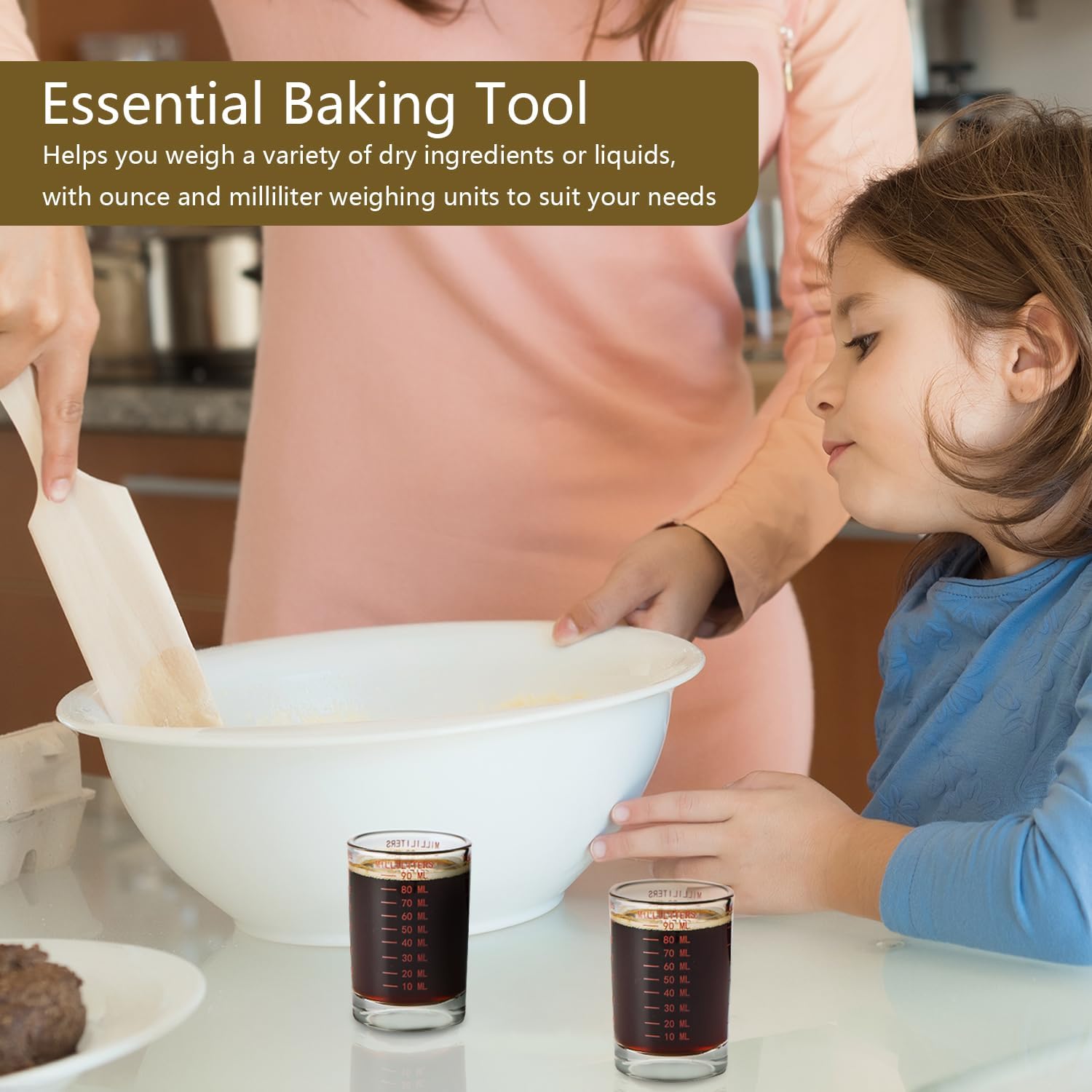 2 Pack Shot Glass Measuring Cup Set,3 oz/90 ML Liquid Heavy High Espresso Glass Cup,Dishwasher Safe,Measurement of Dry and Liquid Ingredients(Red Line)