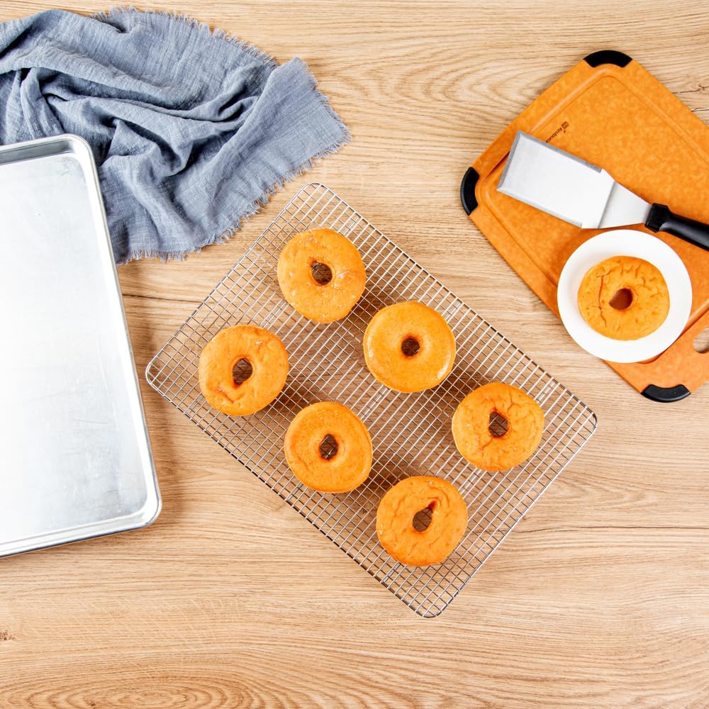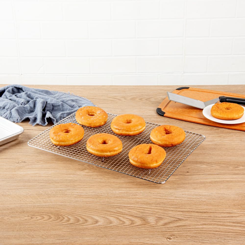 - LONG-LASTING USE: Made from 304 stainless steel, this cooling rack won't corrode and withstands several uses. Oven-ready up to 575F to be used for baking or broiling!