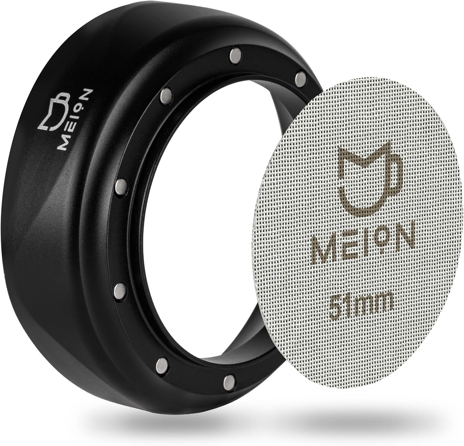 - 【Quality Espresso Tools, Espresso Accessories】 MEION 51mm dosing funnel and 51mm espresso puck screen for 51mm portafilters. Simply place it on the portafilter basket and take your espresso to the next level!