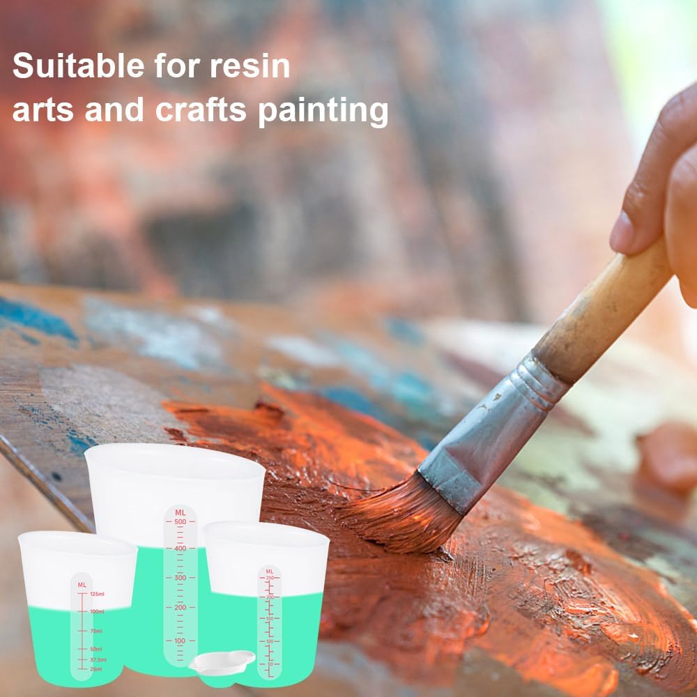 - 【Silicone Measuring Cup Set】 Silicone measuring cup set: 1 500ml epoxy mixing cup, 1 250ml silicone measuring cup + 2 125ml resin mixing cups + 2 10ml silicone cup dispensers, the clever combination allows you to flexibly use resin or DIY Job switching.