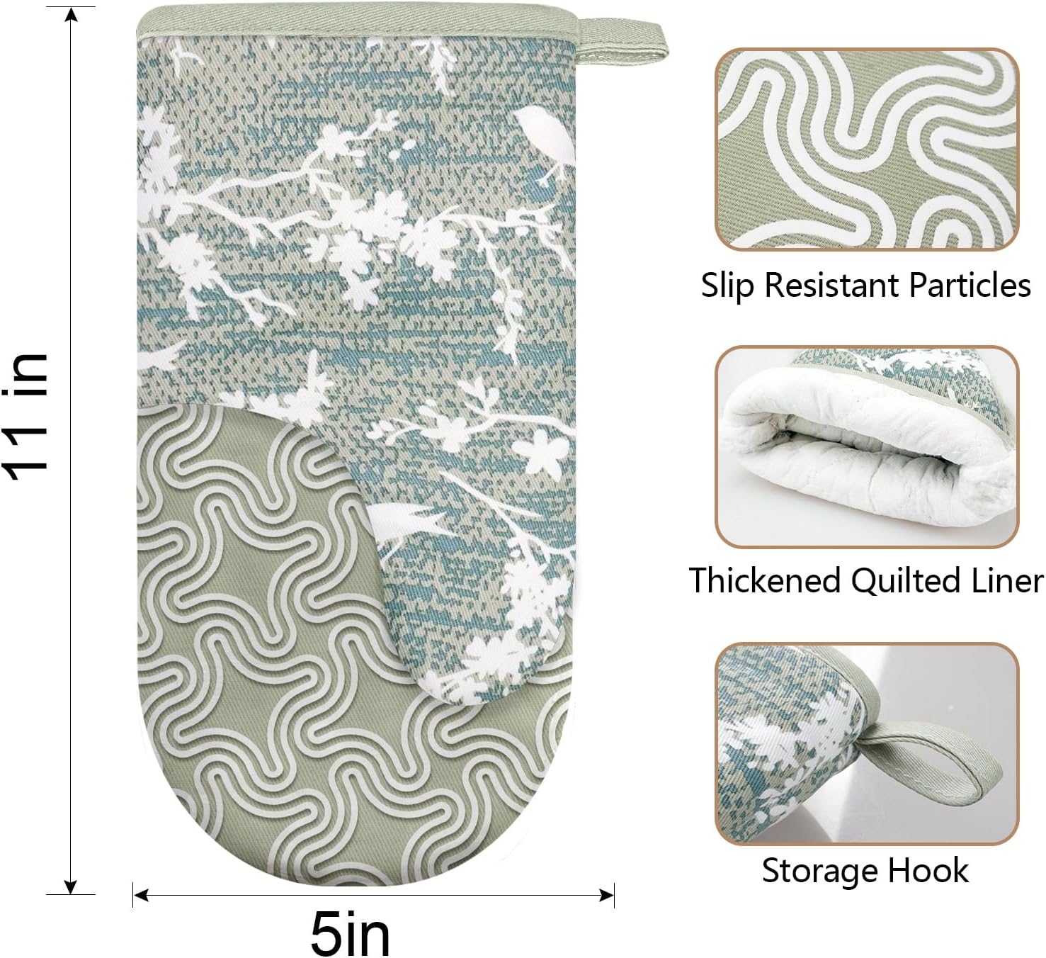 - 3. CUTE & FUNCTIONAL: The oven mitts with fashion patten is cute and add some fun to our kitchen decor. hanging loop, features a convenient for displaying or storing, save your room and make your kitchen look more cleaner.