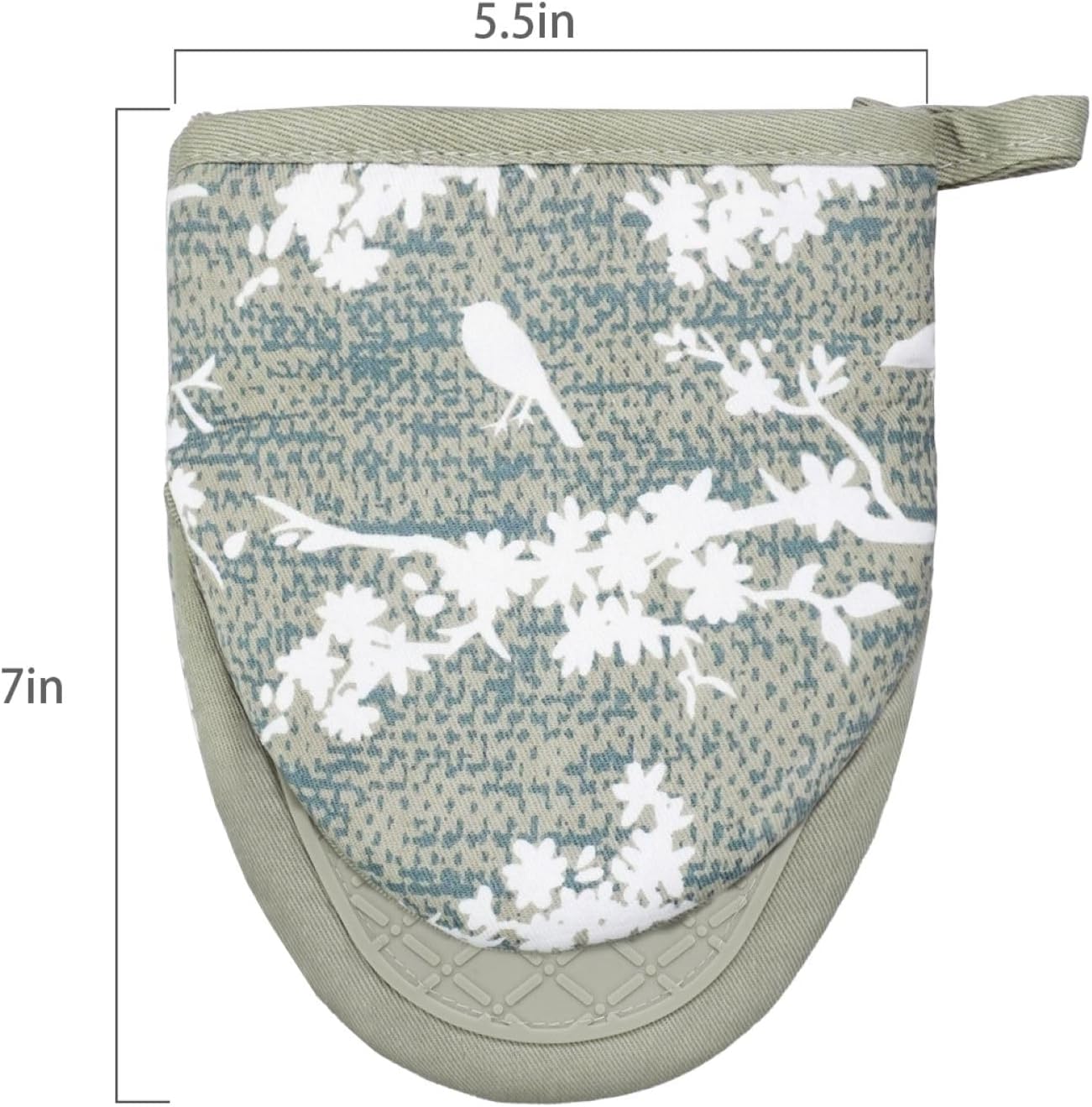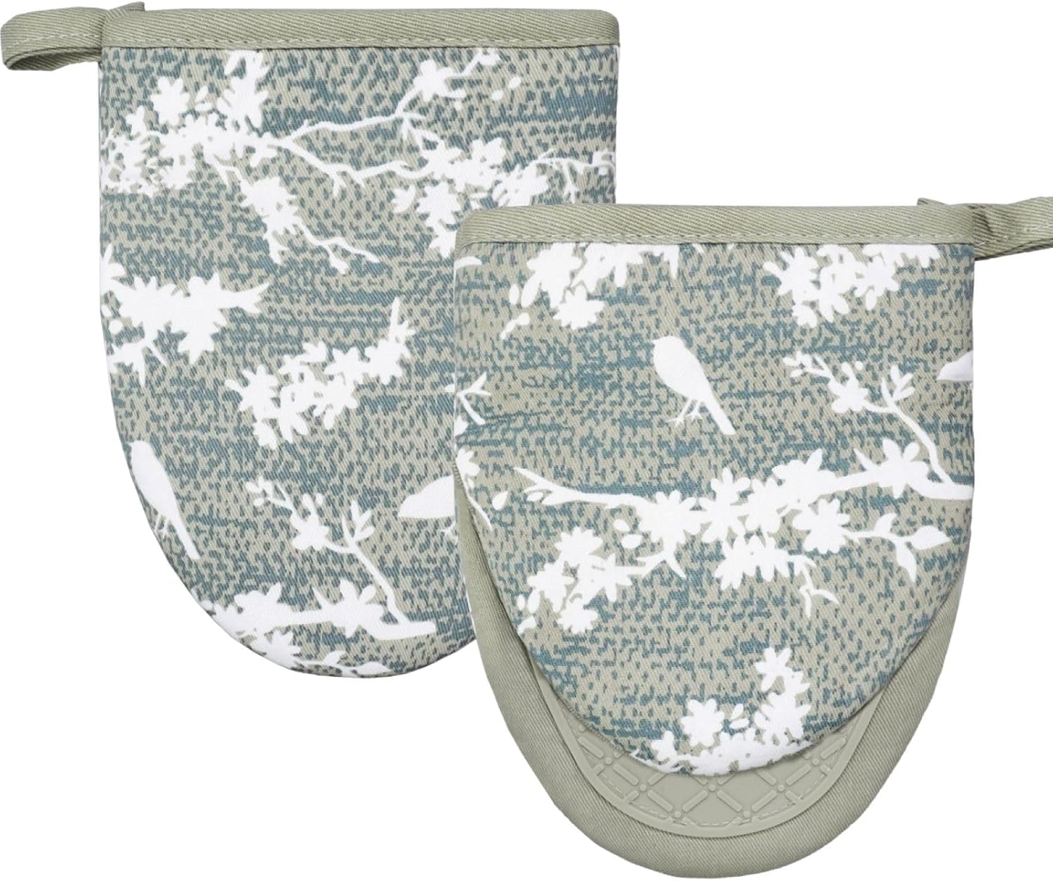 Mini Silicone Oven Mitts, Heat and Slip Resistant Kitchen Gloves 2-Pack Set, Birds Flower Soft Short Oven Mittens, Flexible Thick Pot Holders for Safe Cooking Baking and Grilling (Mini, Aqua)