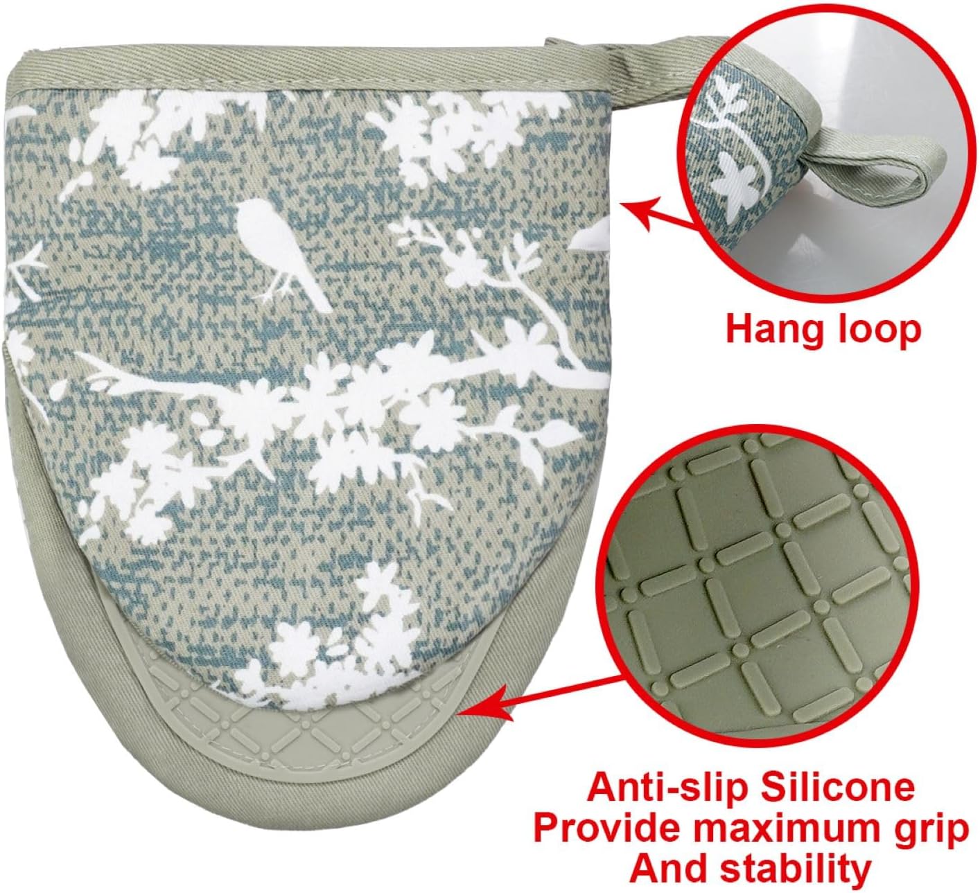 - 1.HEAT RESISTANT: The mini oven mitts made of durable,heat-resistant cotton and silicone, whether removing a pan from your oven, picking up a steaming pot from your stove or tending to a hot grill, you can rest assured that your hands will be well protected by these high quality, heat-resistant kitchen gloves.