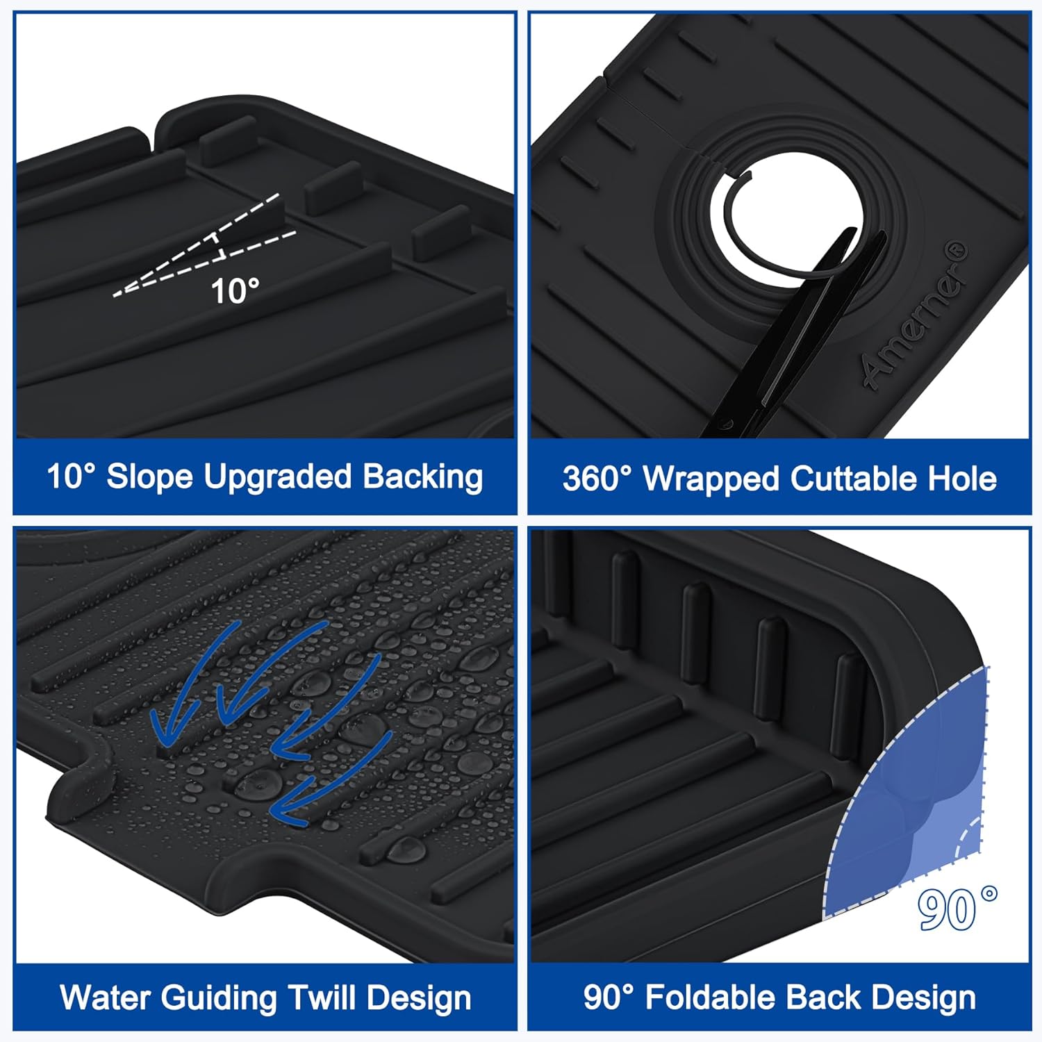 Kitchen Sink Splash Guard, 20 inch Silicone Faucet Guard & Draining Mat, 10° Large Slope Sink Faucet Mat Splash Guard, Bathroom Sink Organizer, Kitchen Sink Accessories Gadgets, 20 x 5.5”, Black