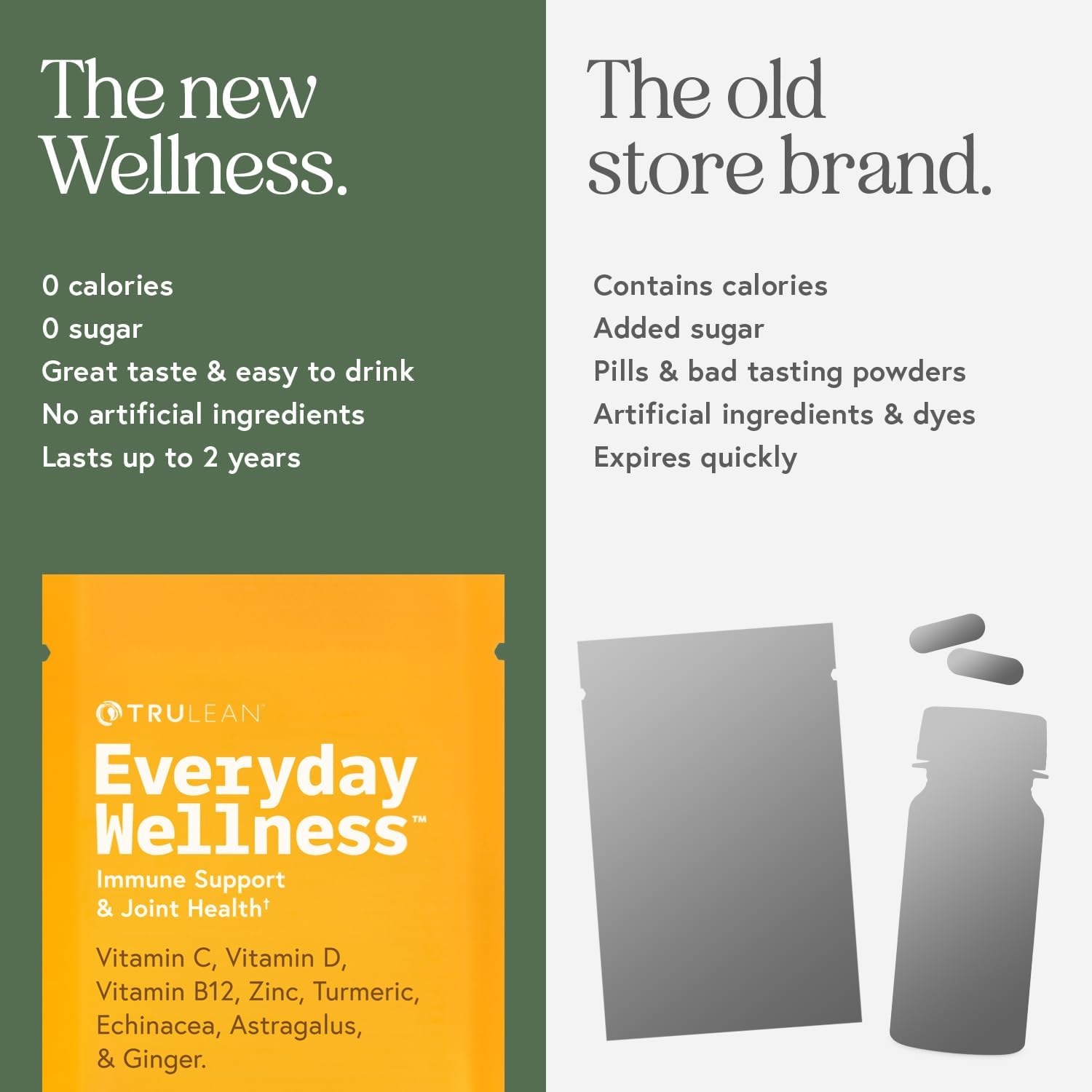 TRULEAN Everyday Wellness Shot Powder - Turmeric, Ginger, Vitamin C, Immunity & Immune Support Supplement - No Artificial Ingredients, No Sugar & Gluten Free - 30 Packets Citrus Flavor