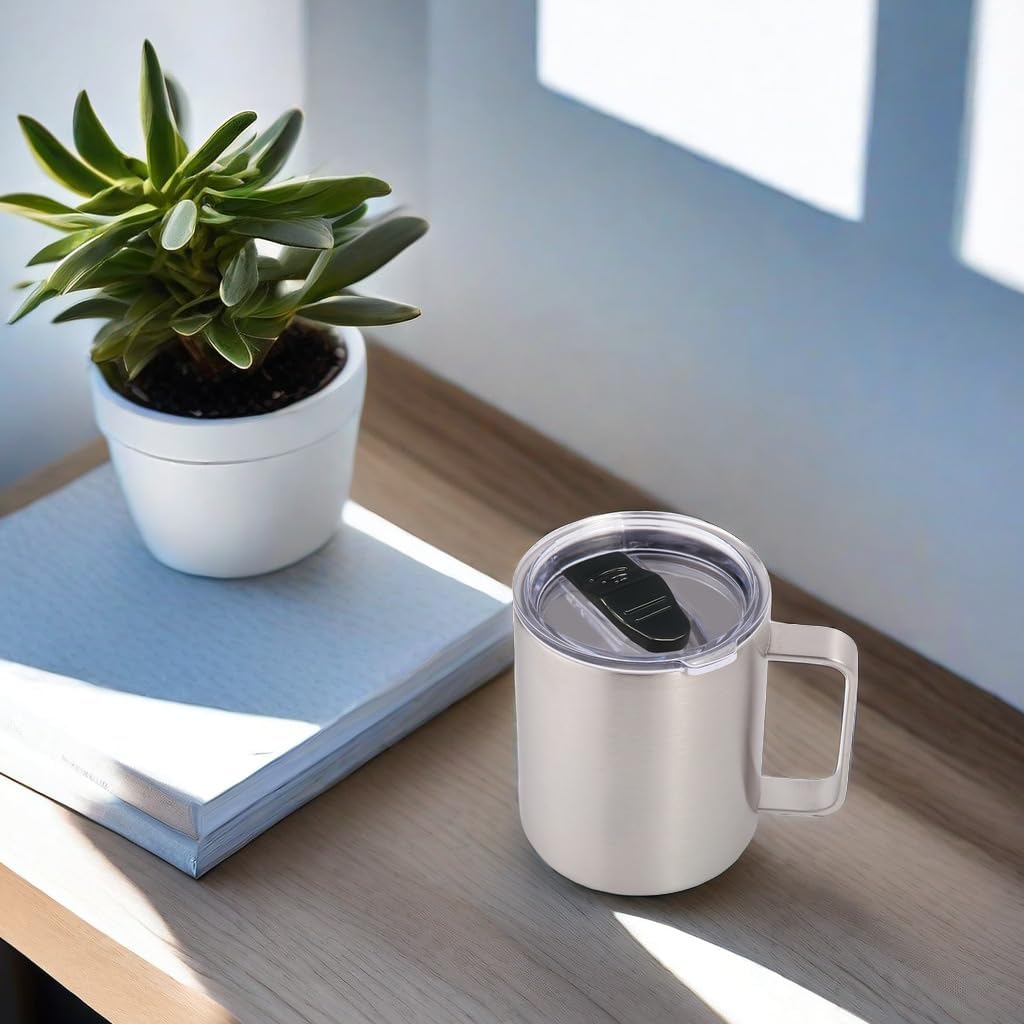 Volhoply 14oz Insulated Stainless Steel Coffee Mug with Lid Bulk 4 Pack,Double Wall Vacuum Travel Coffee Cup with Handle,Reusable Metal Cups Tumbler,Camping Mugs Keep Hot,Ideal Gifts(Silver,4)