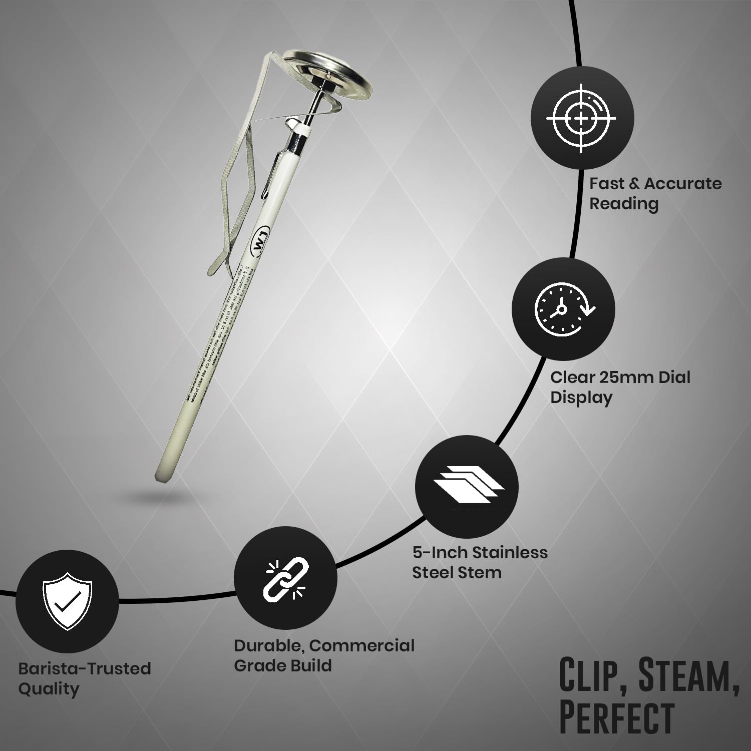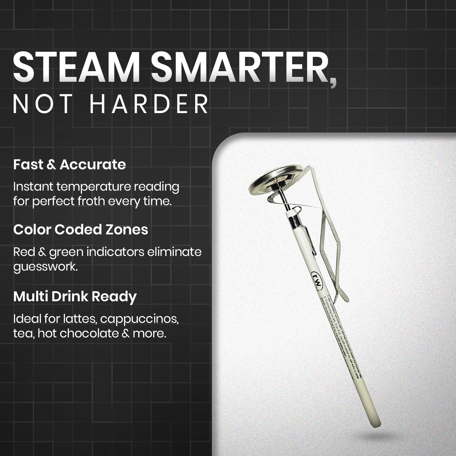 - ๐๐๐๐ ๐๐๐ ๐ ๐๐ ๐๐๐๐ ๐๐๐ ๐๐๐๐๐๐๐๐๐๐ ๐๐๐: A versatile addition to any kitchen, our 7" Easy Steam Thermometer combines fast reading, user-friendly features, and unmatched reliability, making it the ultimate choice for home coffee enthusiasts, professional baristas, and bustling restaurant settings. Increase the quality of your beverages and elevate your coffee game by choosing the best thermometer on the market.