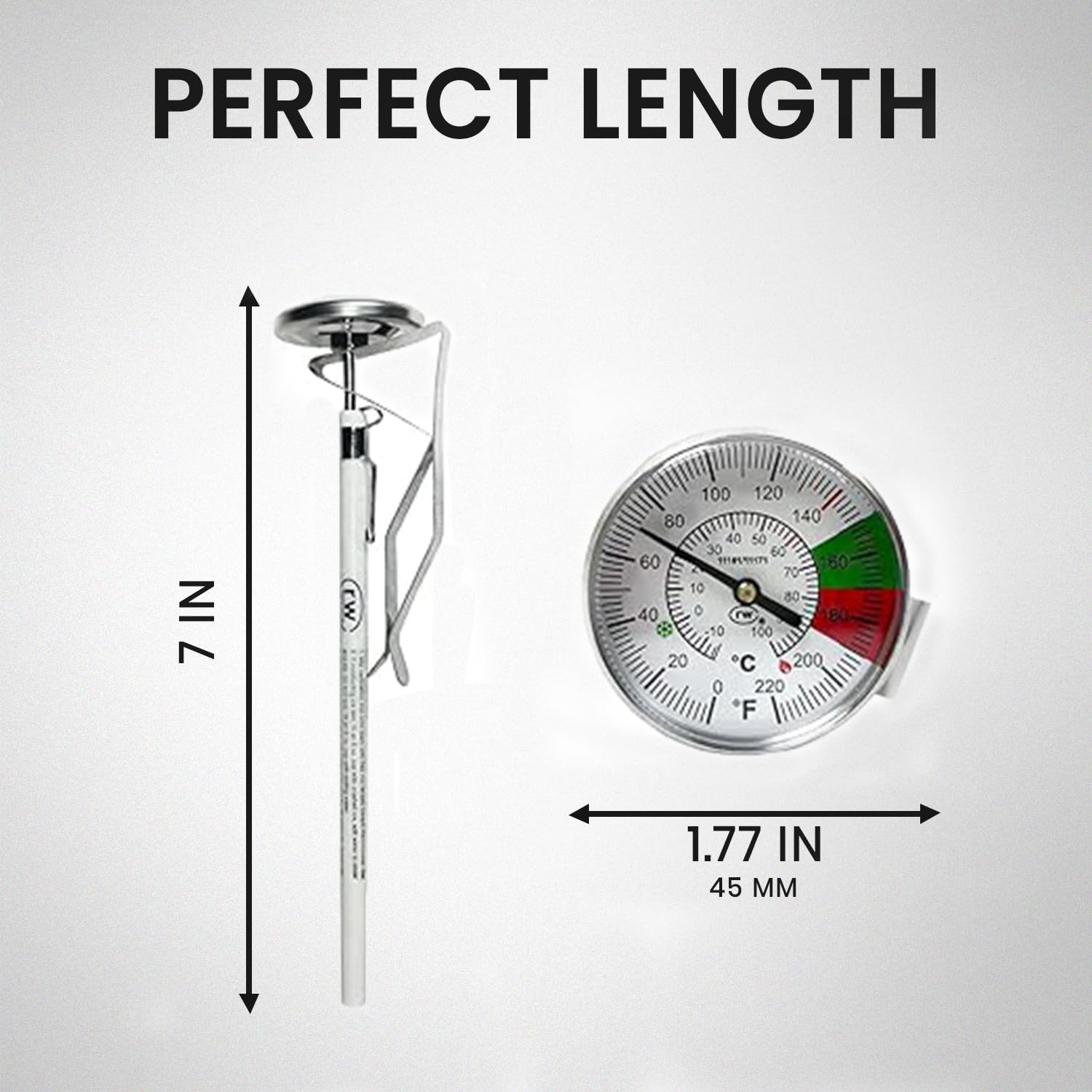 Rattleware 7โ Easy Steam Thermometer for Home, Cafe, Restaurants, Residential, or Commercial Use - Milk Frothing and Barista Thermometer - Durable Fast Reading (45mm Dial)