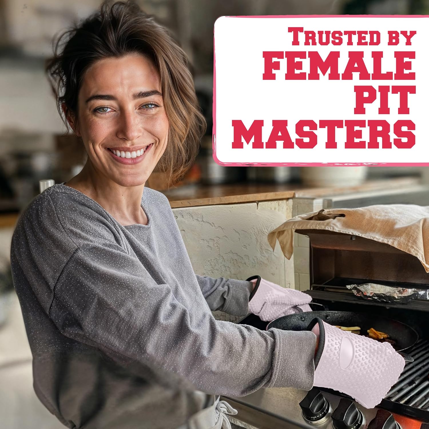 - You Are In The Top Chef League - After we did a market survey among top chefs and grillers we succeeded in making the ultimate comfortable kitchen oven mitt with a non-slip grip, fits perfectly all men and women alike, just the perfect set of 2 that will protect you from any danger, from the heat that comes from your smoker or barbecue gas grills outdoors to the top of your stove indoors! We got you covered! Don't settle for a cheap imitator. Great dad gifts for men traeger accessories.