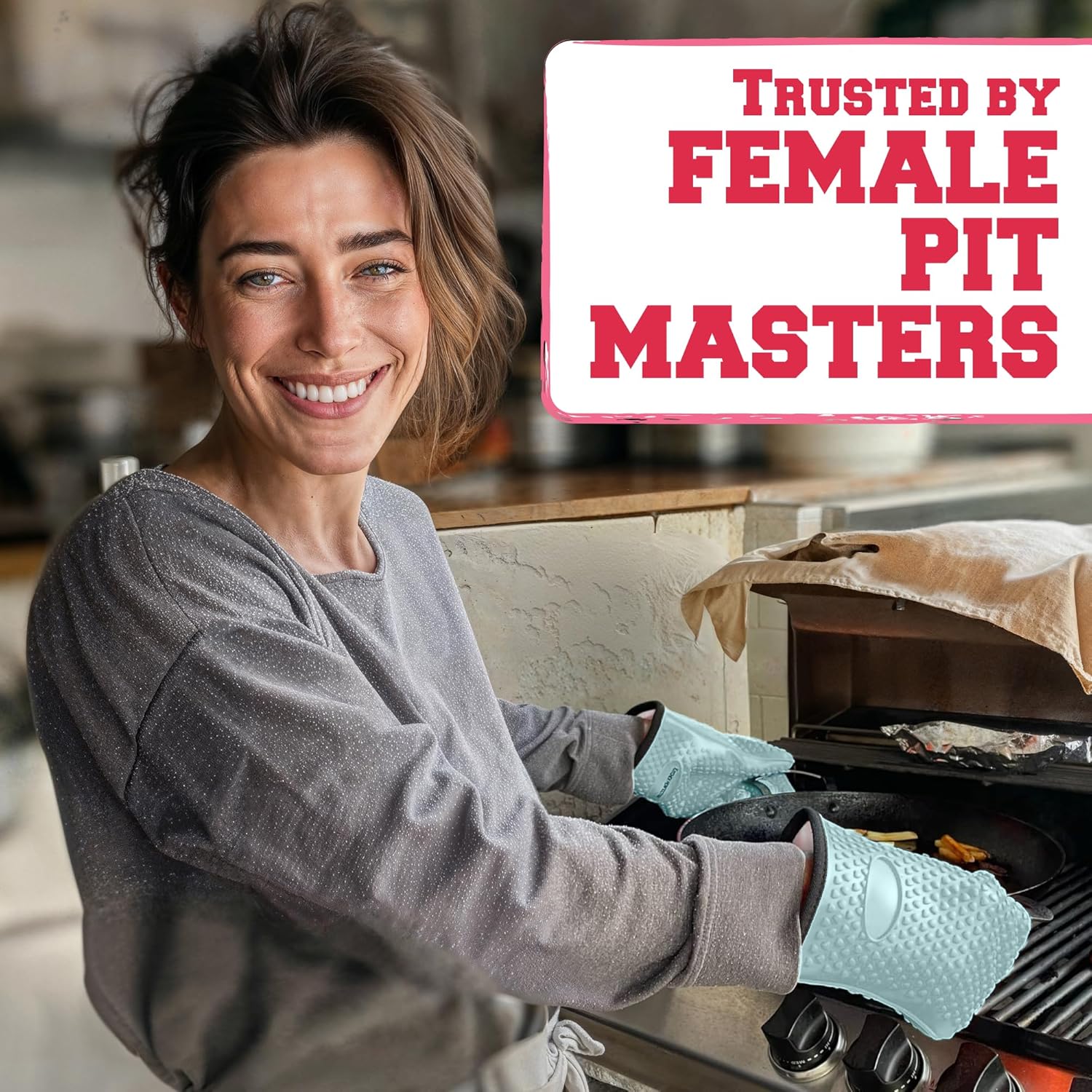 Kitchen perfection S Silicone Smoker Oven Gloves for Women -Extreme Heat Resistant BBQ Gloves -Handle Hot Food Right on Your Grill Fryer |Waterproof Oven Mitts for Cooking |Superior Set+3 Bonuses
