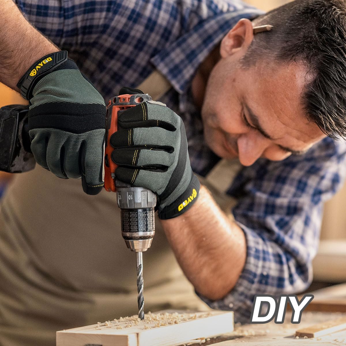 KAYGO Work Gloves For Men, KG125M Mechanic Utility Work Gloves for All Purpose, Excellent Grip, Heavy Duty, Improved Dexterity, Touch Screen,M