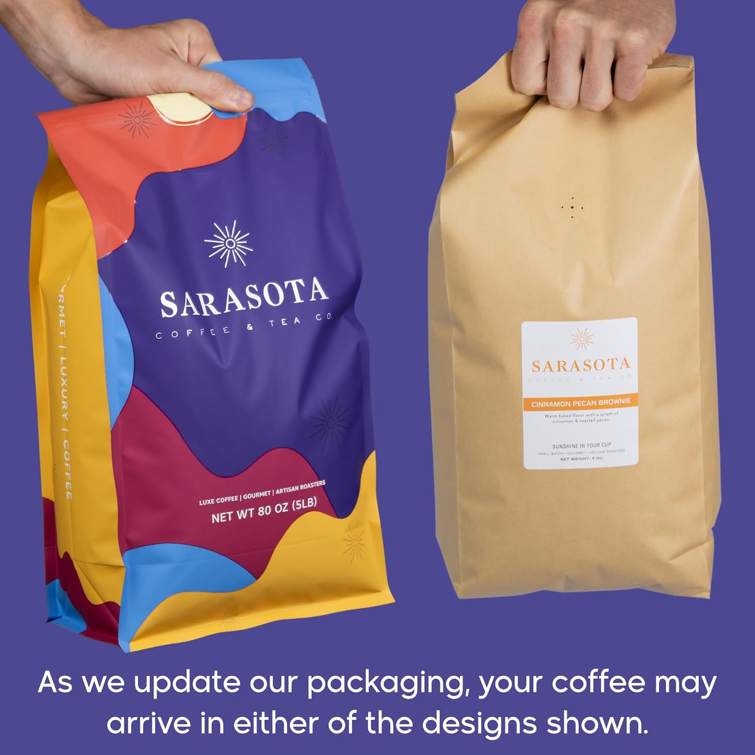 Sarasota Coffee Whole Bean Cinnamon Pecan Brownie | Medium Roast Gourmet Flavored Coffee Beans | Low Acid, Mold Free, Specialty Grade Bulk Beans | 5lb (80 oz)