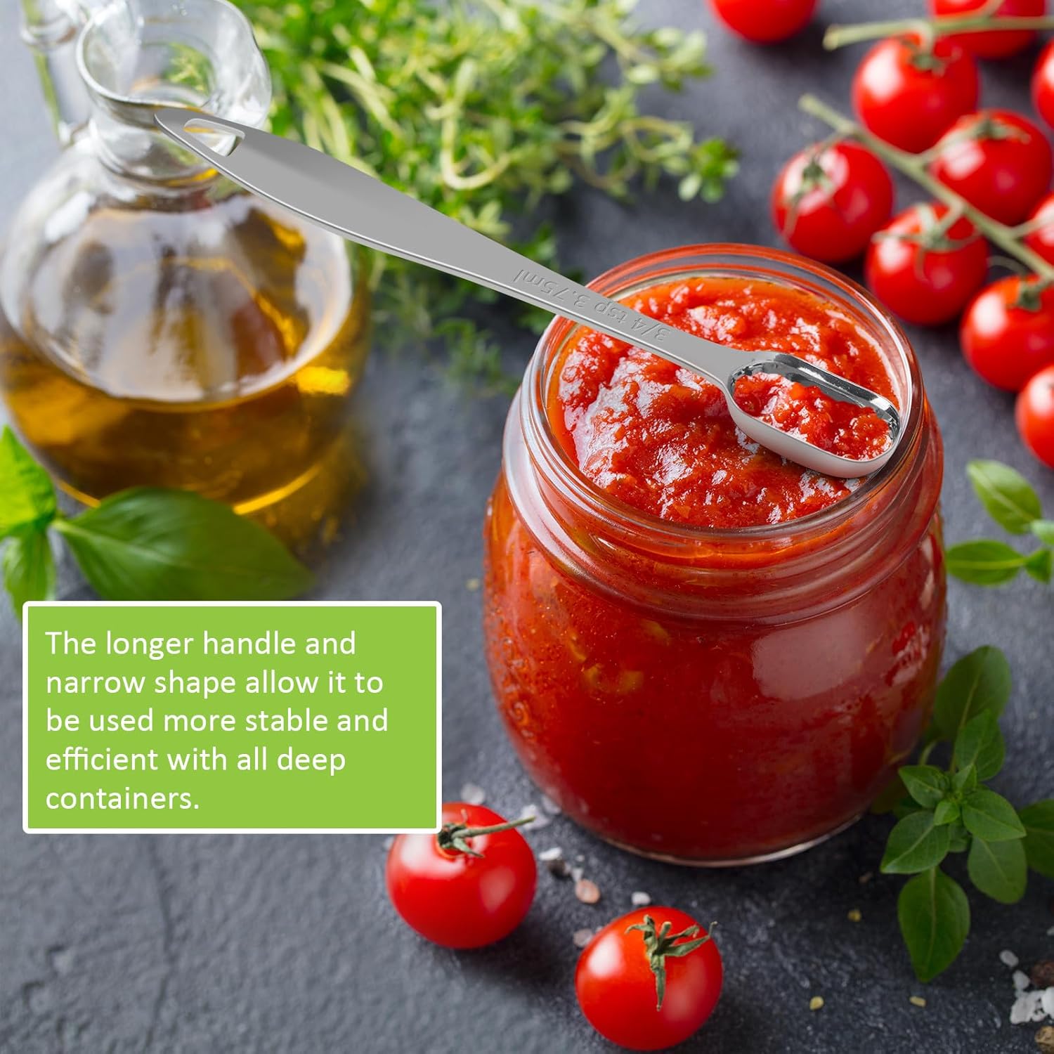 - 【High Quality】Unlike ordinary measuring spoons, the durability measuring spoon is 100% made from food-grade 304 stainless steel with rectangular & narrow design to ensure that the spices will not be spilled. The longer handle and narrow shape allow it to be used more stable and efficient with all deep or shallow spice jars, bottles, and containers.