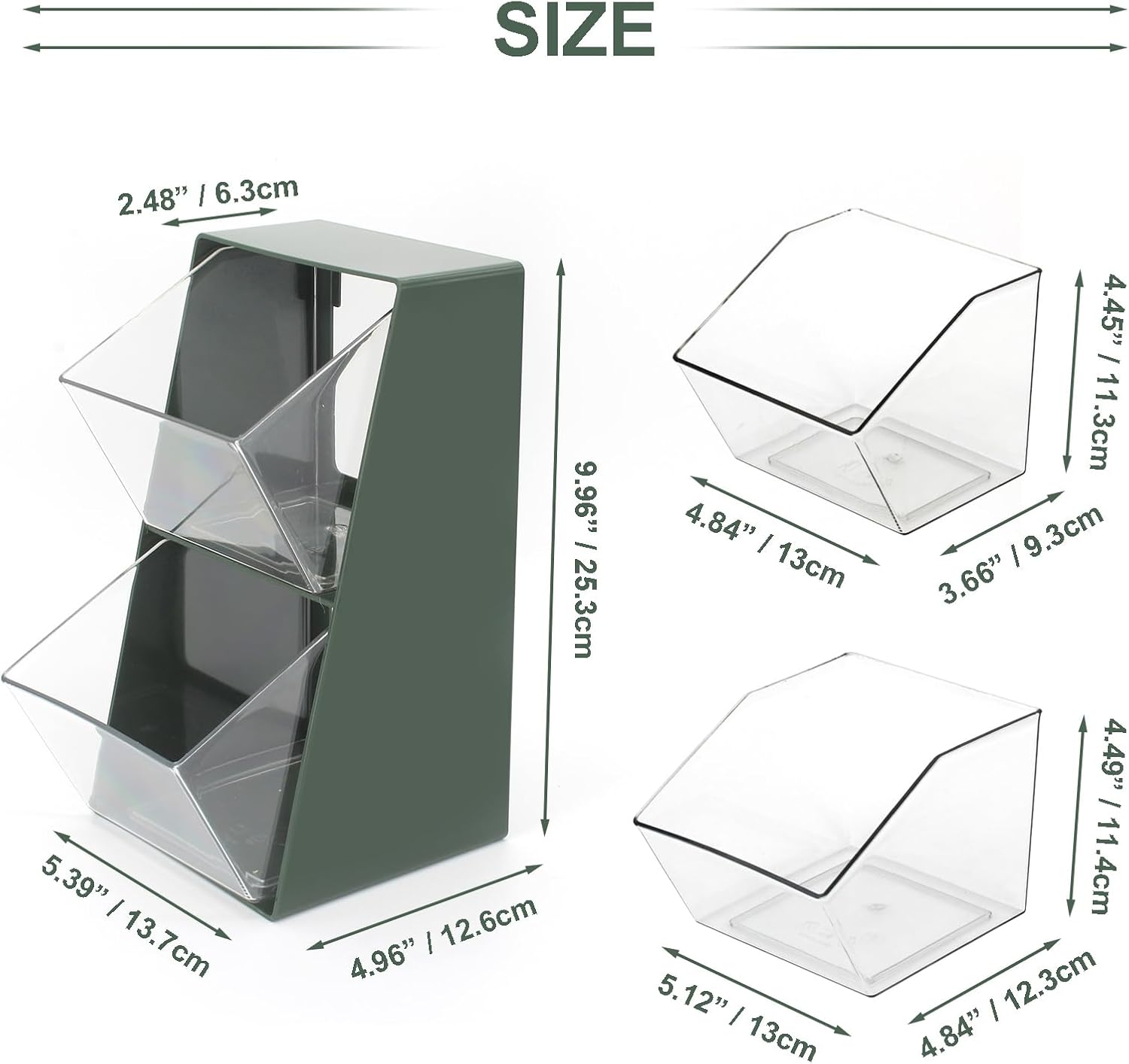 - Compact Size, Big Impact --- Our coffee pod holder with two removable bins for k cups, tea bags, sugar, creamer etc. This storage box offers the flexibility to be customized and adjusted according to your needs. Whether used individually or stacked, it provides ample storage space to accommodate your high-capacity storage requirements. Idea for small coffee bar accessories in the coffee station, counter, drawer and cabinet use.Everything is easy to find in the clear drawers.