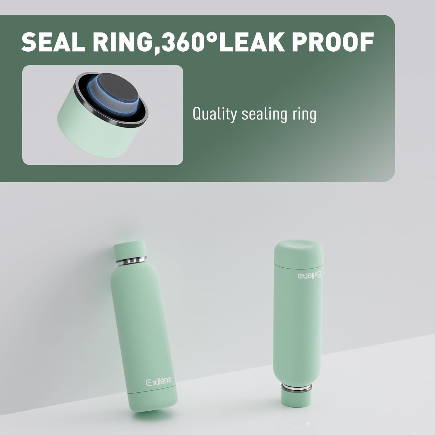 Slim Insulated Water Bottles for Travel 18oz with Clip, Double Wall Vacuum Stainless Steel Water Bottle Keeps Drinks Cold 24 Hrs/Hot 12 Hrs, 100% Leakproof, BPA Free(Mint)