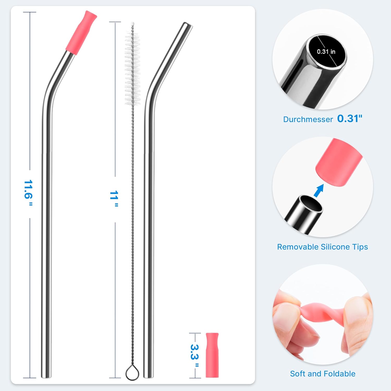 - 【Silicone Tips】 Our straws are paired food-grade silicone tips for a safe and comfortable sipping experience. The soft and flexible silicone tips ensure a gentle touch while preventing any potential harm to your teeth or lips