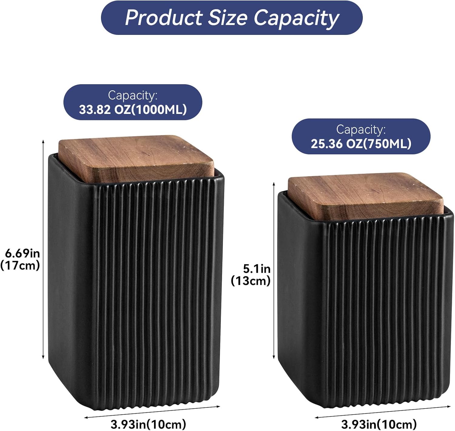 Ceramic Storage Jars Modern Elegant Polished Airtight Gorgeous Storage Canisters with Wooden Lid Small Food Stroage Jar for Kitchen Spice Tea Vanilla Sugar Coffee Beans (Black,Small size,13cm*10cm)