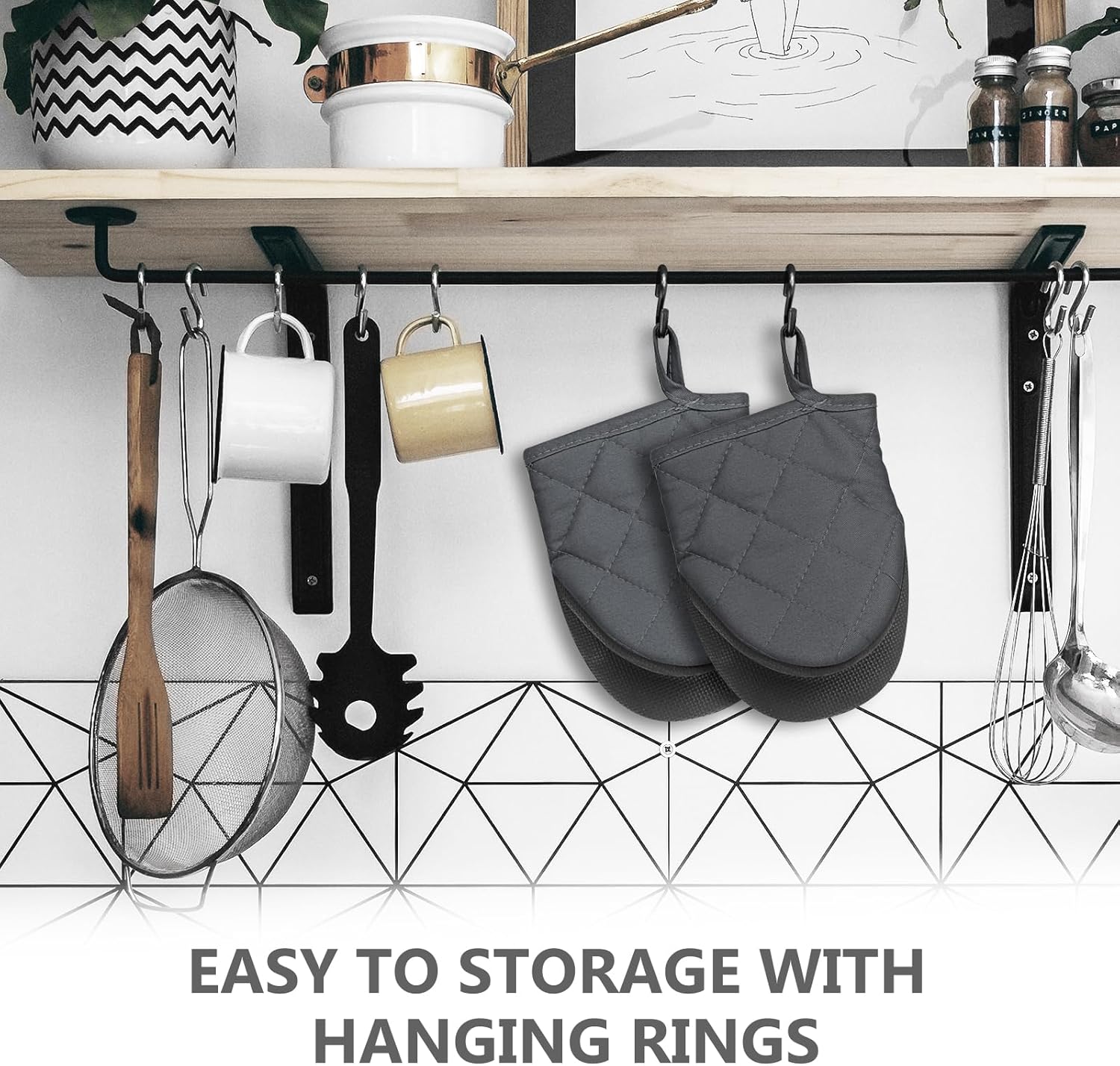 1 Pair Short Oven Mitts - Silicone Kitchen Oven Gloves High Heat Resistant 500℉, Mini Oven Mits with Non-Slip Grip Surfaces and Hanging Loop for BBQ, Baking, Cooking and Grilling (Solid Gray)
