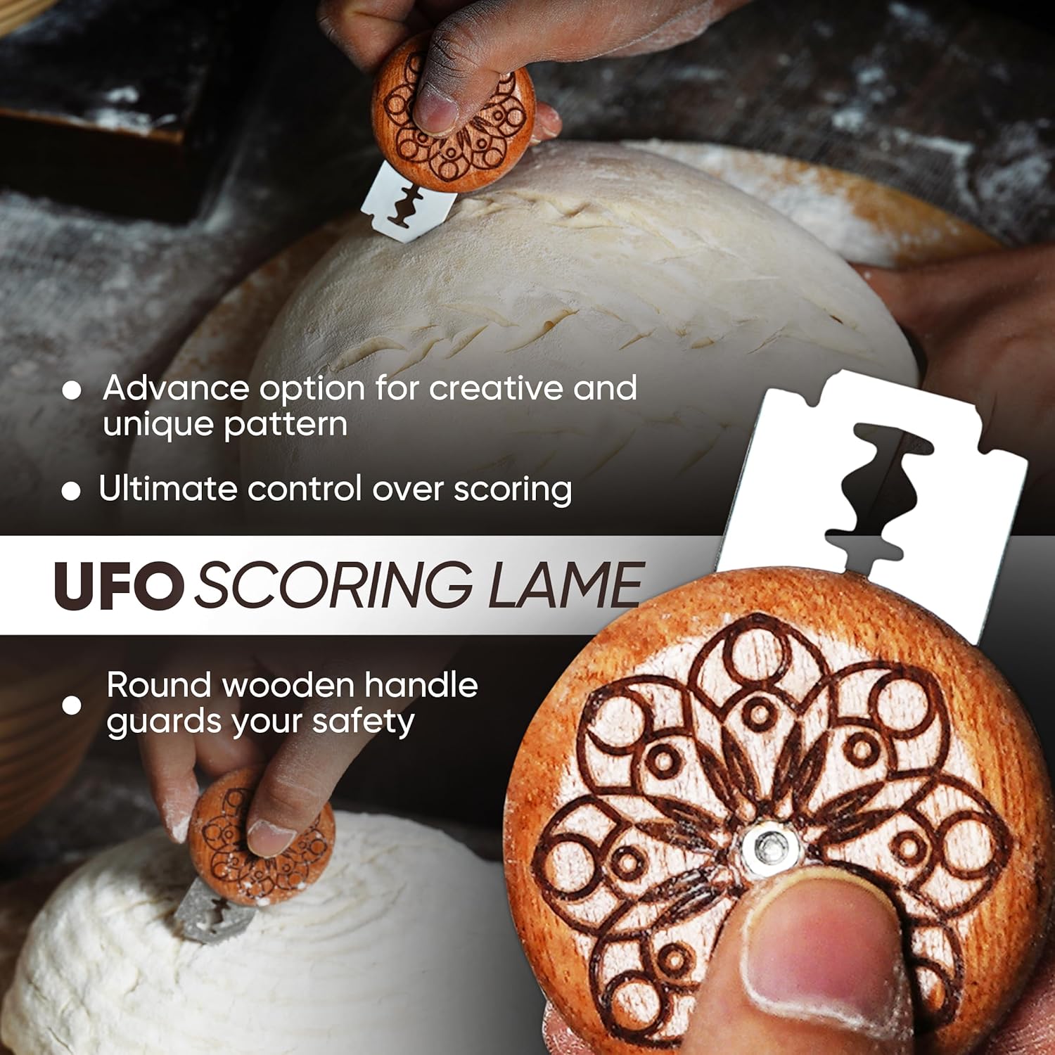 - Advanced UFO Scoring Tool: Features a round “UFO”-style bread lame for superior grip and control. The disc design gives confident, precision cuts (even novices can score expert-level patterns).