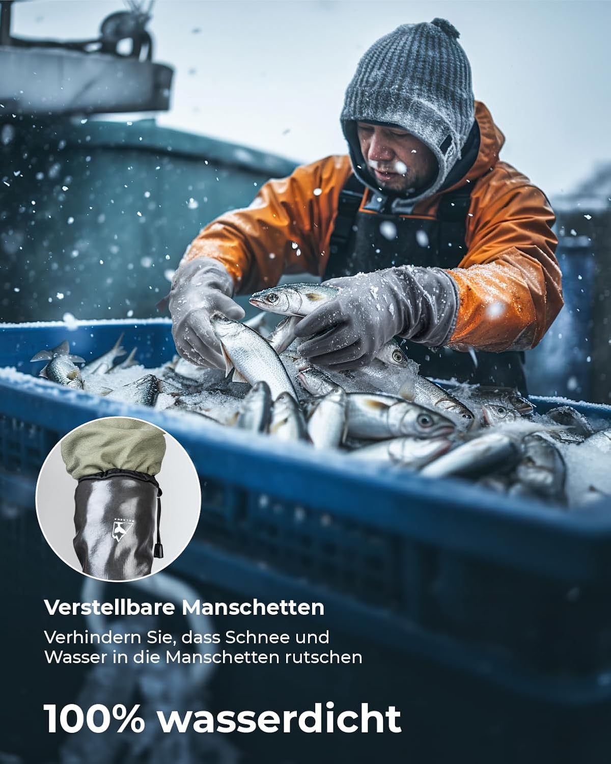 - Long Waterproof Gloves: Made with water-based PU coating for 100% waterproof protection in cold weather. The freezer gloves wick away sweat and protect palms, wrists, and forearms ideal for cold storage, fishing, and similar jobs.