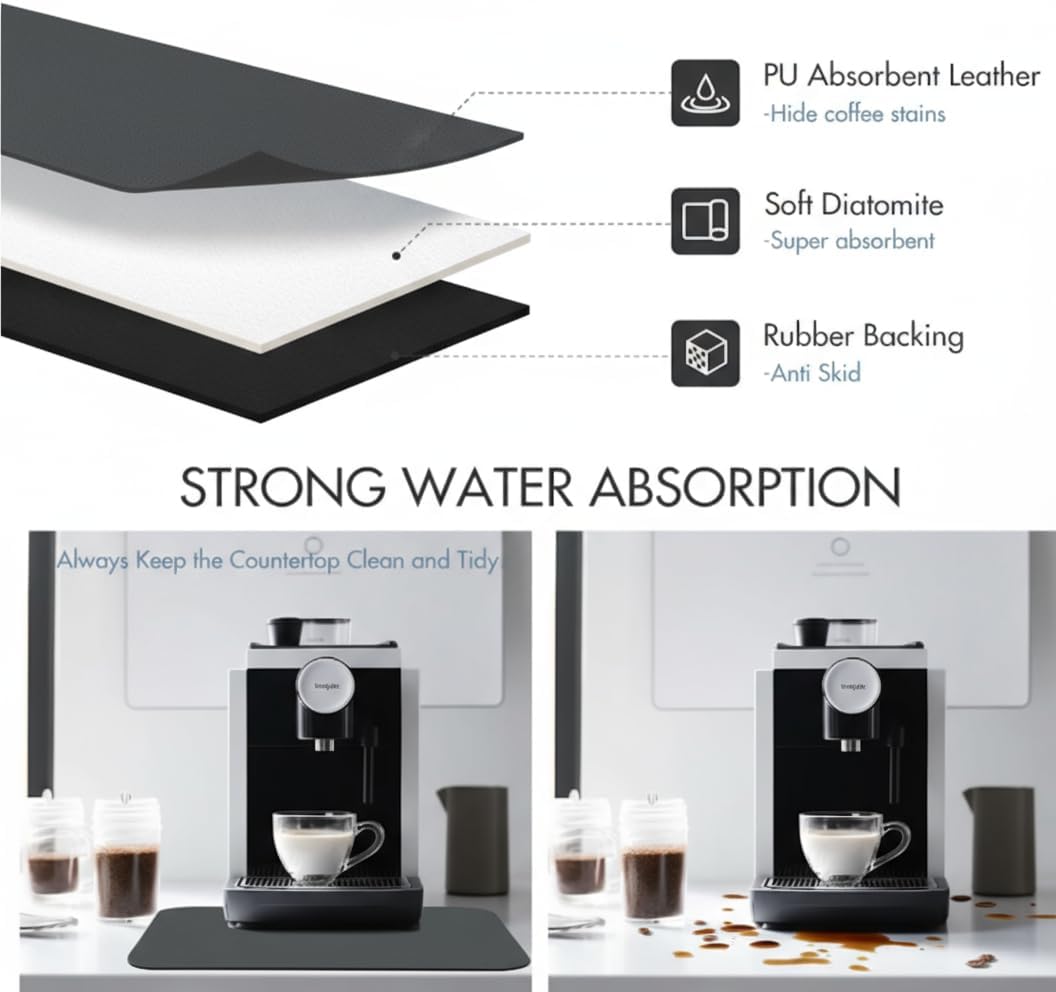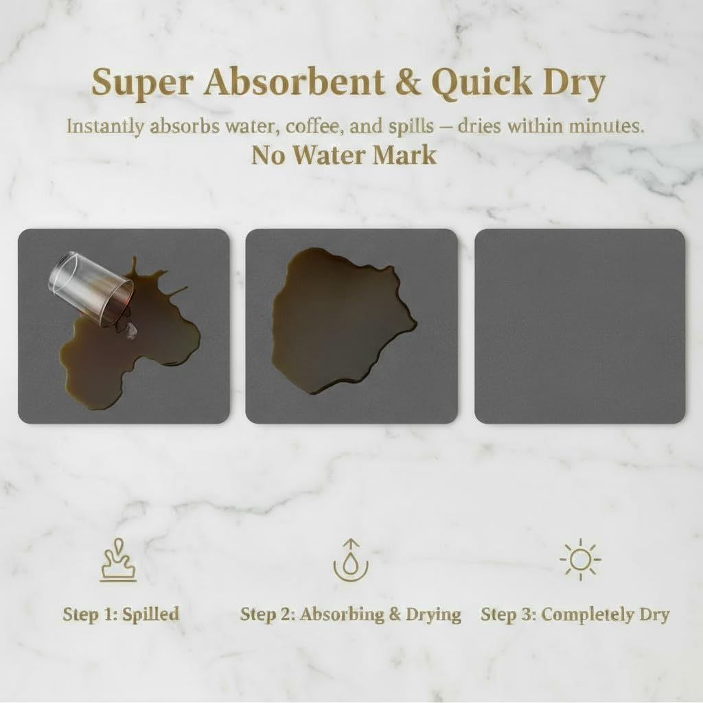 Dish Drying Mat Super Absorbent – 16" x 12" Coffee Mat for Countertops – Non-Slip Drying Mat for Kitchen Counter – Easy to Clean Water Absorbent Mat – Quick Dry Dish Drying Mats (Dark Gray)