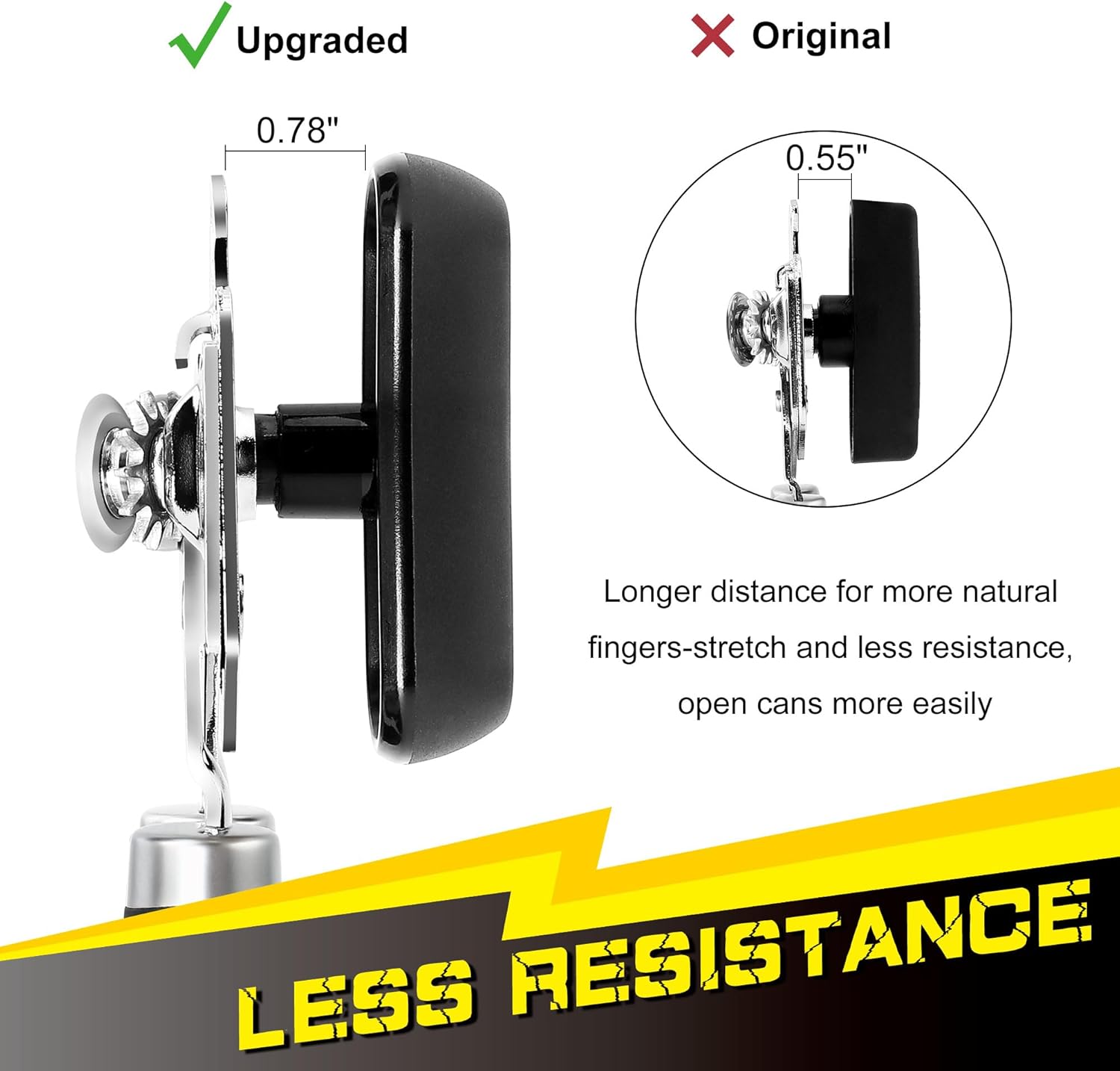 - Overall Upgrades in Cutting Mechanism - The sharper stainless steel blade cuts the lid more deeply. The reinforced high-carbon gear bites the rim firmly, and drives the blade to go around the can smoothly, making a continued cut and leaving a smooth edge.