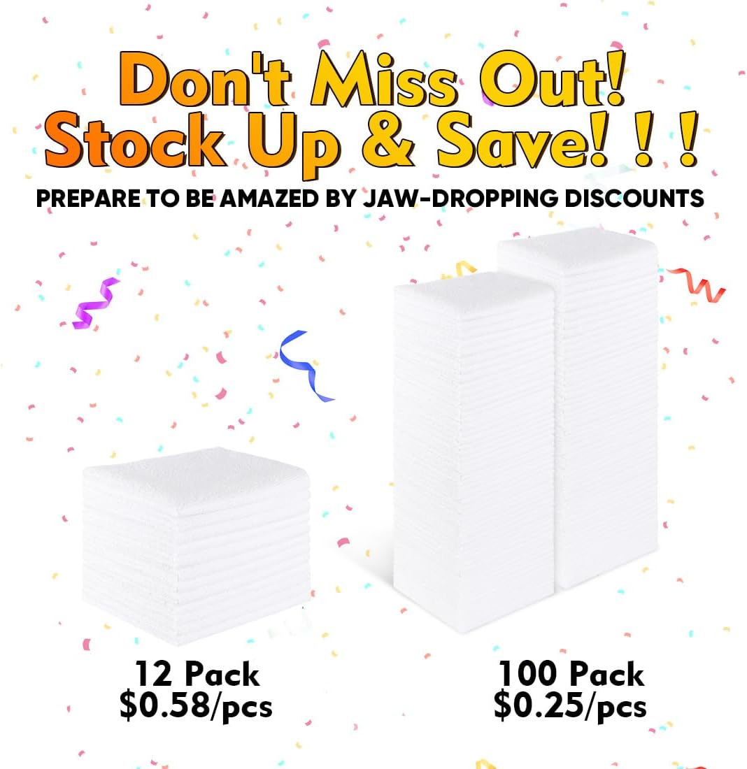 HOMEXCEL White Shop Towels 100 Pack, Reusable Microfiber Towels for Cars, Bulk Multipurpose Microfiber Cleaning Cloths, Lint Free Cleaning Rags for Car, House and Kitchen, 11.5 x 11.5 inch