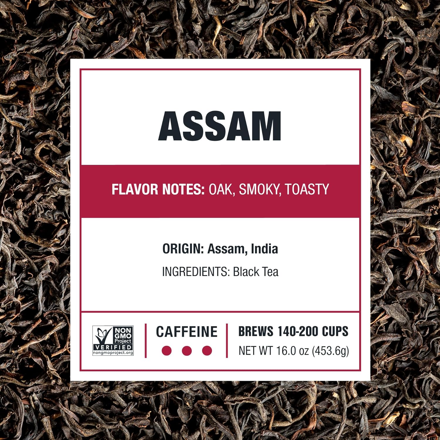 Tiesta Tea - Assam Black Tea, Loose Leaf, Single Origin Premium Black from India, High Caffeinated, Make Hot or Iced & Brews Up to 200 Cups, Pure Unblended, 16oz Resealable Bulk Pouch