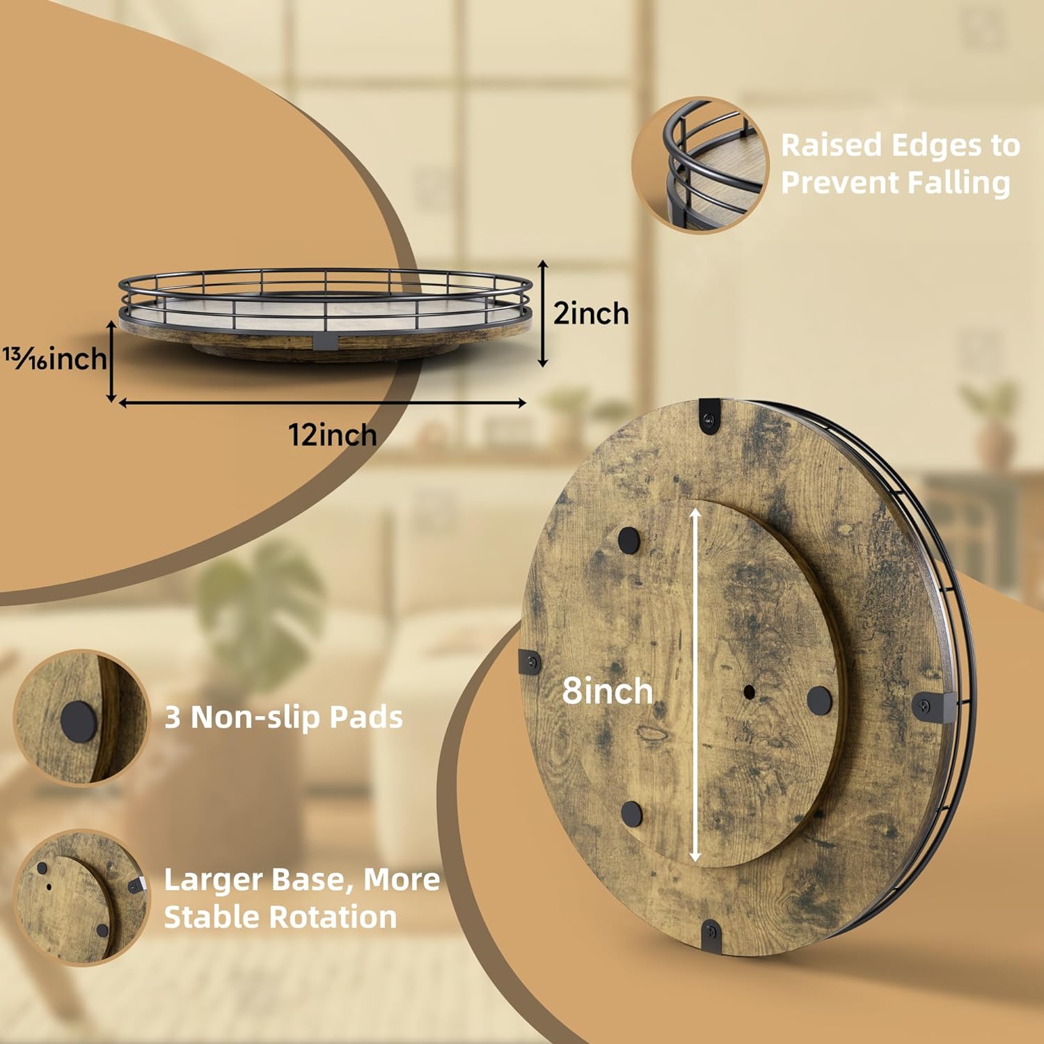 - Wide Application - The lazy susan organizer adopts handmade craftsmanship. Its MDF material is strong and long-lasting, not easy to wear and has no odor. The surface has exquisite texture, creating a unique rustic style