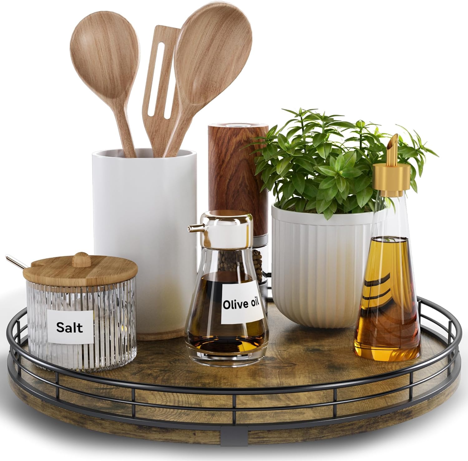 - 360°Smooth Rotation - The lazy susan turntable rotates smoothly and silently, placed next to the stove for easy access to condiments, spices, olive oil and cooking supplies. Placed next to the sink to display soap lotion. Thoughtful kitchen countertop organizers to rid your life of clutter!
