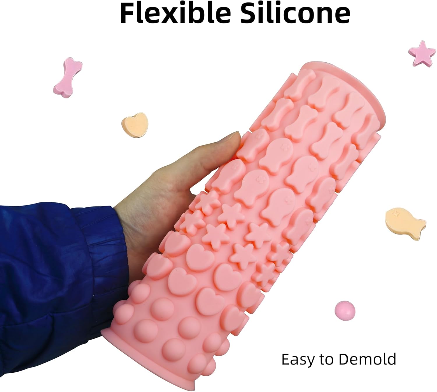- Easy to Use: The silicone dog treat molds are flexible and can be popped out easily. Cleaning is a breeze. Just put it into the dishwasher or clean it with fluid water.