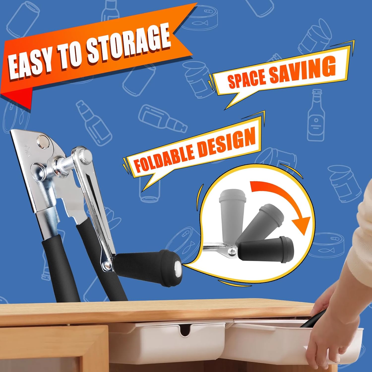 Can Opener Manual, ICEKATI Commercial Heavy Duty Can Opener for Large Cans, Folding Hand Crank with Comfortable Long Handles, Sharp Blade Smooth Edge