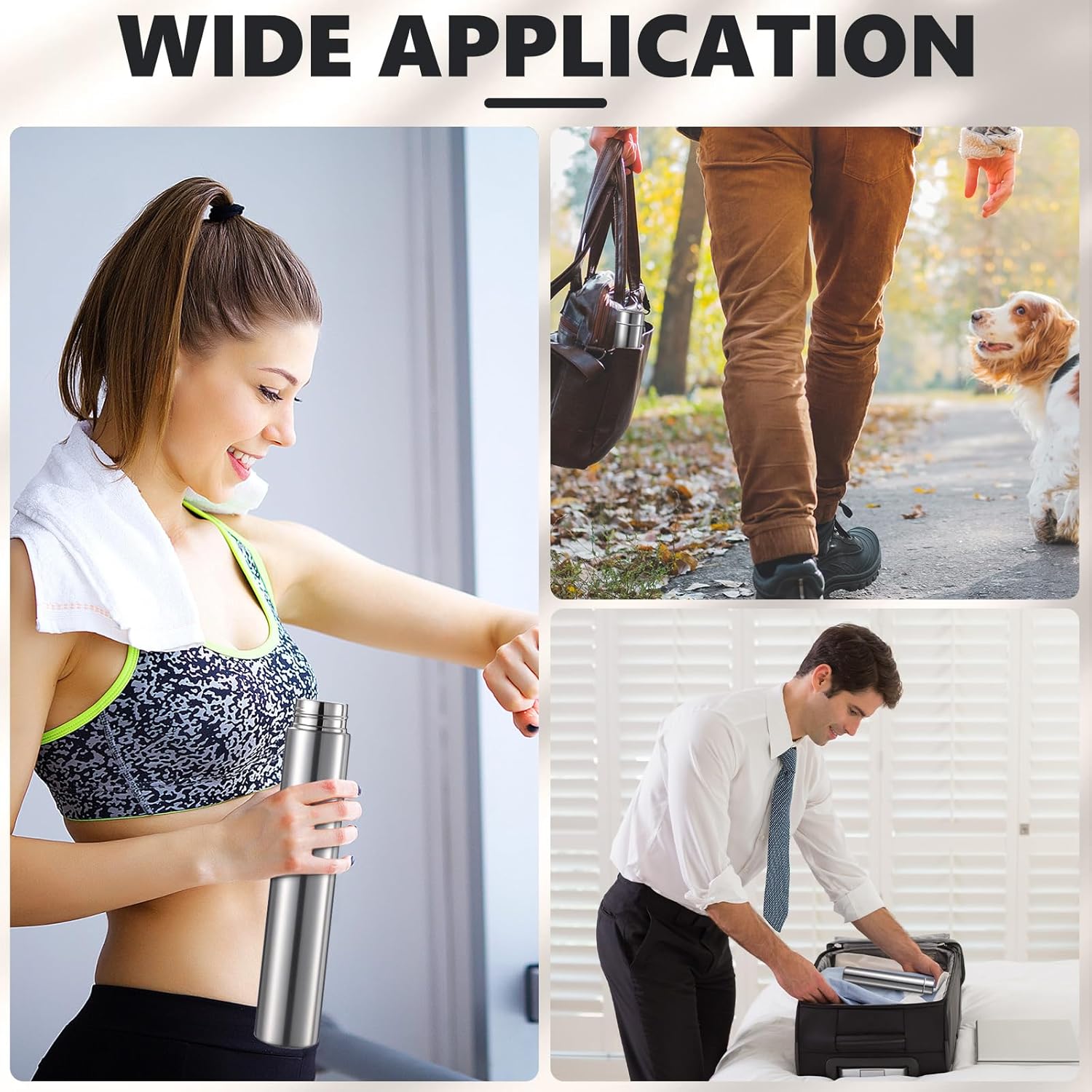 - Slim and Easy to Carry: our slim water bottle for purse is thin and long, you can hold it with one hand; You can easily put it into your backpack, lunch bag, handbag, purse, tote bag's side pockets, travel purse, women's purse, fishing pack, gym bag, or suitcase, so you won't need to use a disposable cup or another person's cup; We remind you to carefully check if the lid is tightened before placing it in your backpack