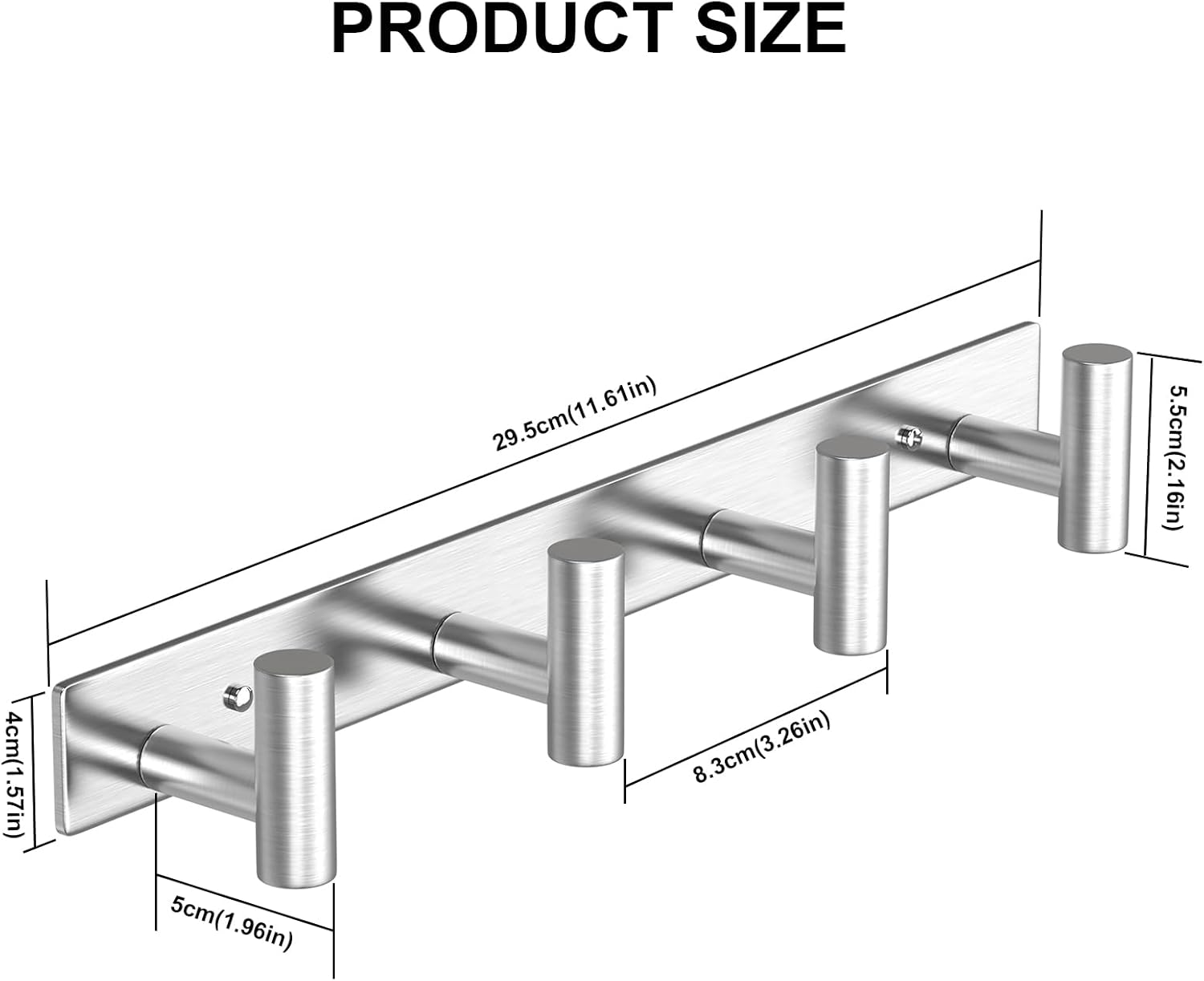 - VERSATILE USE:This Silver Row Hook Coat Rack with 4 Hooks is good for various locations, including bathrooms, kitchens, living rooms, entrances, and offices. Use it to hang towels, kitchenware, coats, hats, jackets, wallets, keys, and more, adding functionality and organization to your space
