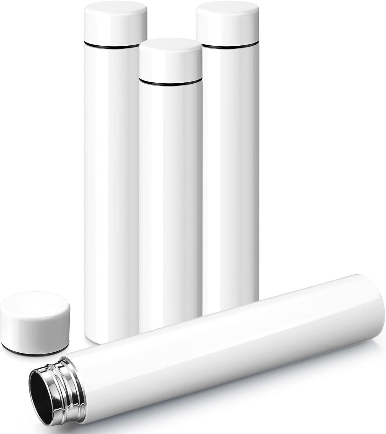 Vesici Slim Water Bottle 8.8 oz Small Stainless Steel Purse Compact Insulated Water Bottles Camping Travel Backpack Pocket Flask for Car Cold Coffee Tea(White,4 Pack)