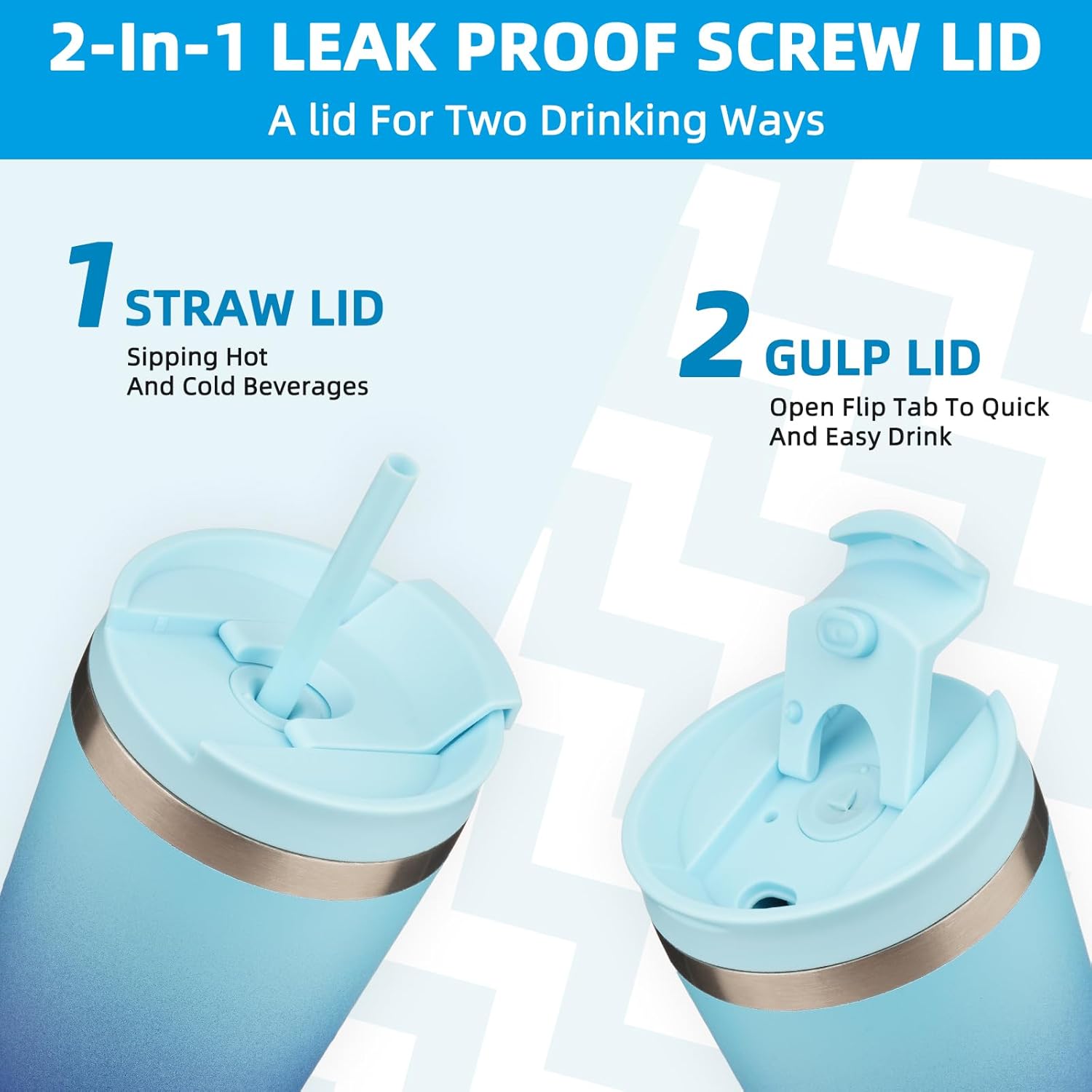 - BPA-Free Threaded Lids: The 2 In 1 Screw-on Lid, Not Only Can You Open The Lid And Drink Directly From The Flip Lid, But Also Can Insert A Straw In The Middle, Choose Your Own Way For Drinking