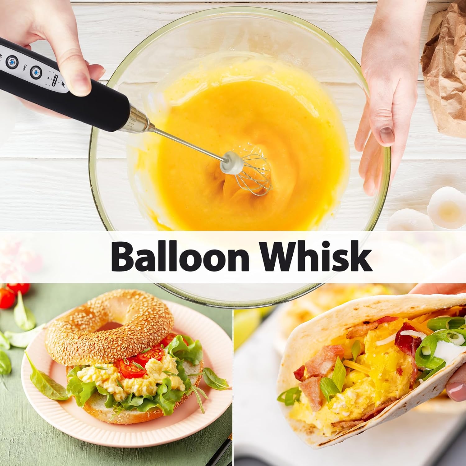 Milk Frother Rechargeable Handheld-Electric Whisk 3 Speed Adjustable, Frother Wand Coffee with 3 Stainless Whisks, Electric Foam Maker, Drink Mixer Blender for Latte Cappuccino Matcha Egg