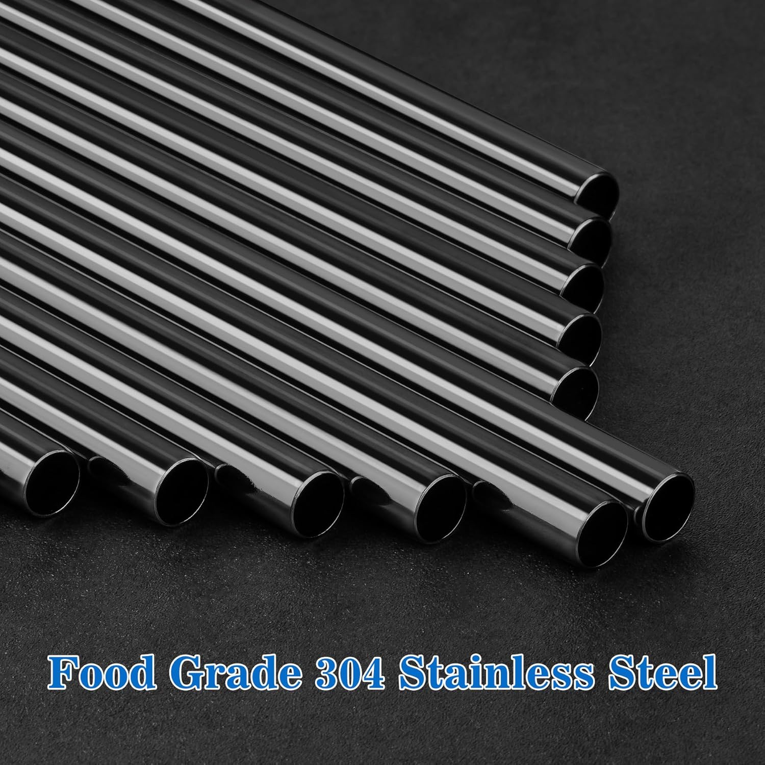 Tomorotec 11 Inch Stainless Steel Reusable Drinking Straws 14PCS & 2 Cleaning Brushes Set with Curved & Straight Designs, Compatible with 30oz Stanley Tumblers, Dishwasher Safe, BPA-Free (Black)