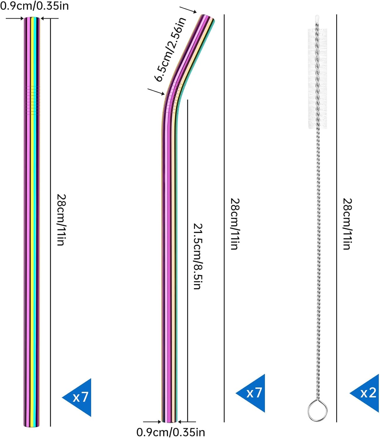 - 🍹 Exceptional Value Set - This fantastic package includes 7 straight straws (11" x 0.35"), 7 curved straws (11" x 0.35"), complemented by 2 additional extra-long cleaning brushes. Offering superior convenience and practicality, this set is a must-have for any household.