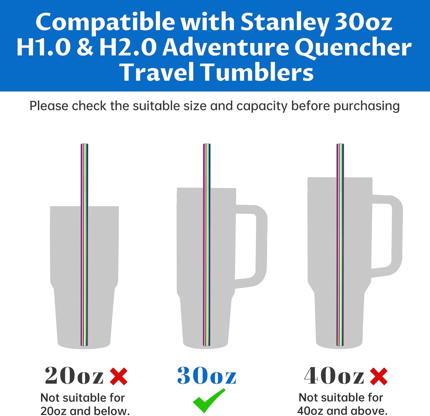 - 🍹 Compatibility - With dimensions of 11" in length and 0.35" in width, these straws are compatible with your Stanley 30oz Adventure Quencher Travel Tumbler. Their large diameter simplifies the enjoyment of milkshakes and fruit teas, allowing you to easily savor your beverages.