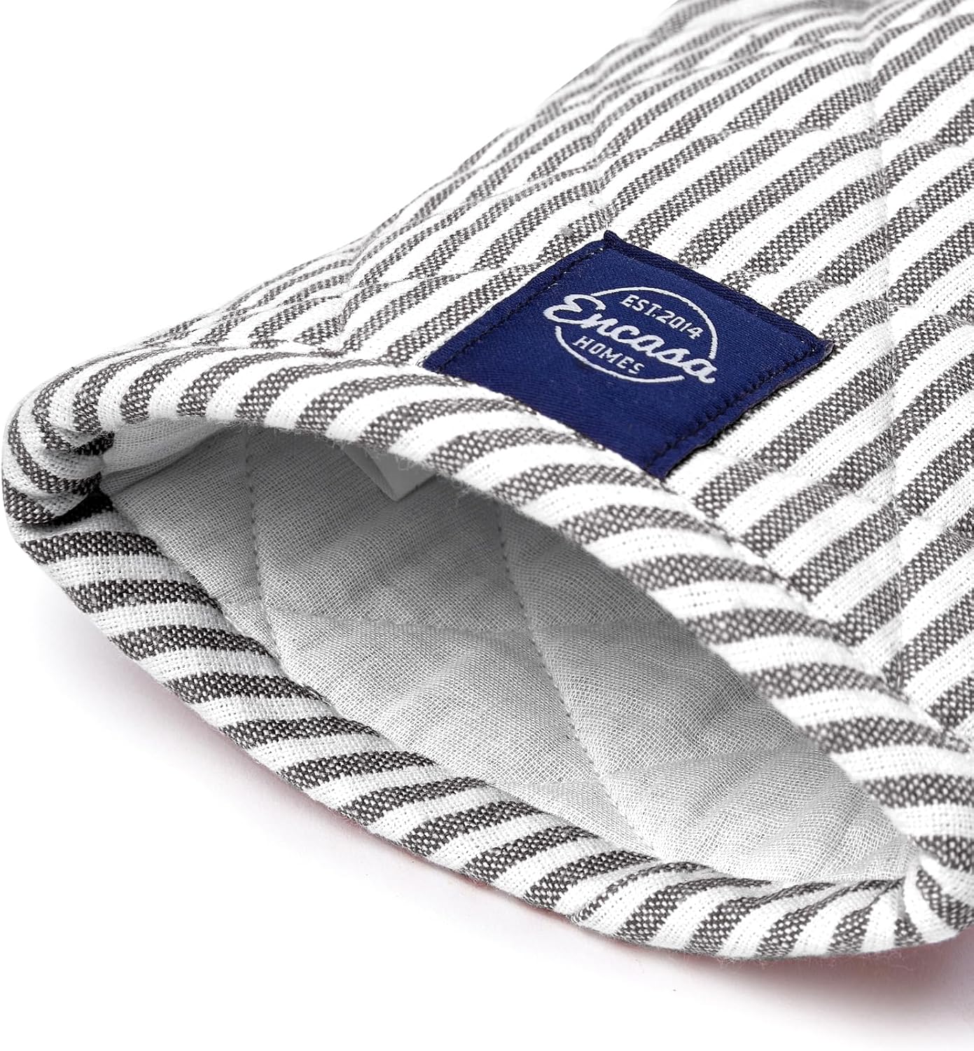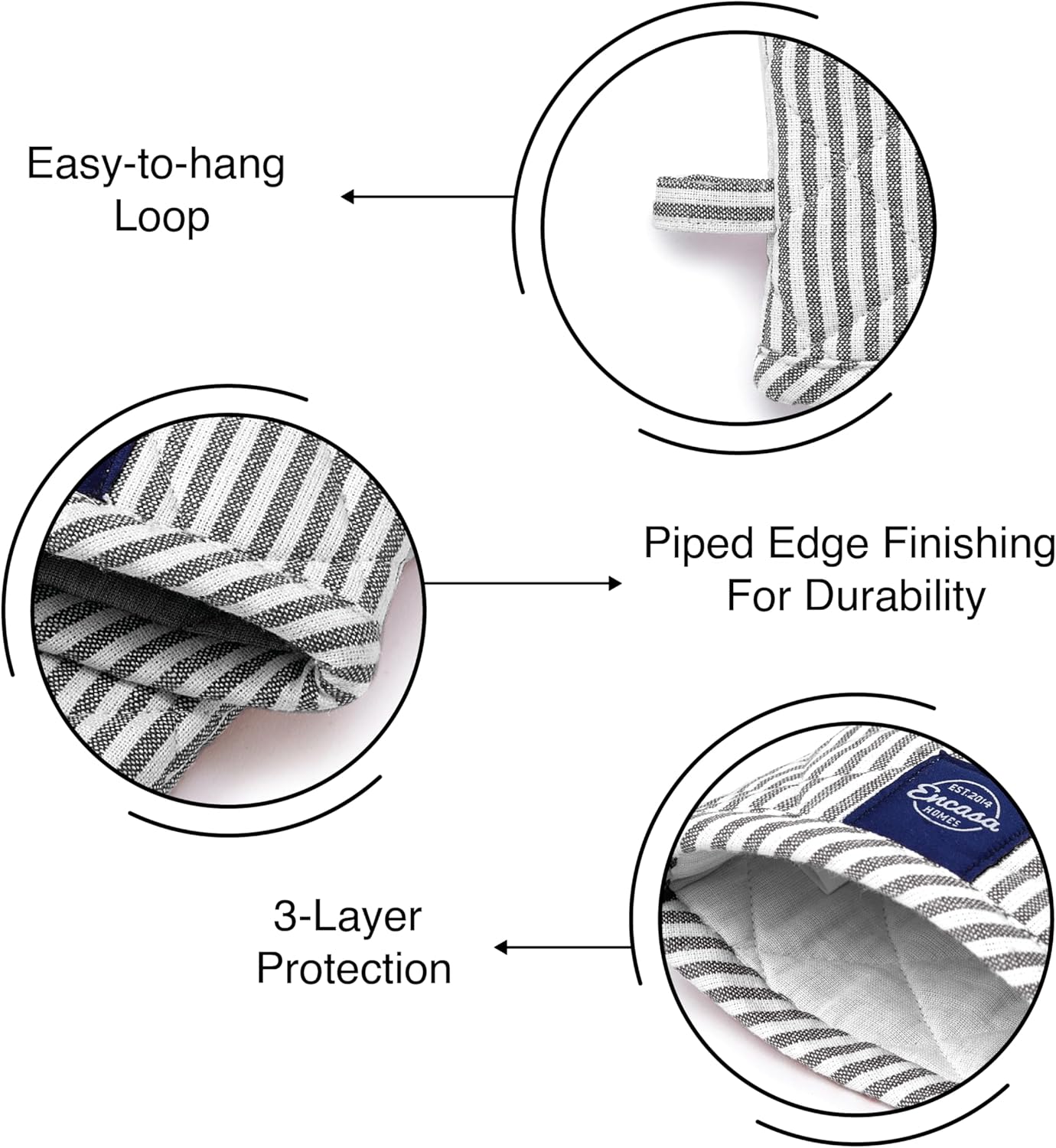 Encasa Homes Long 12"x7" Oven Microwave Hand Gloves Mitts (2 pc Set) for Kitchen Cooking & Baking - Heat Resistant, Thick & Safe, Protection of Hands from Hot Utensils - Ticking Black