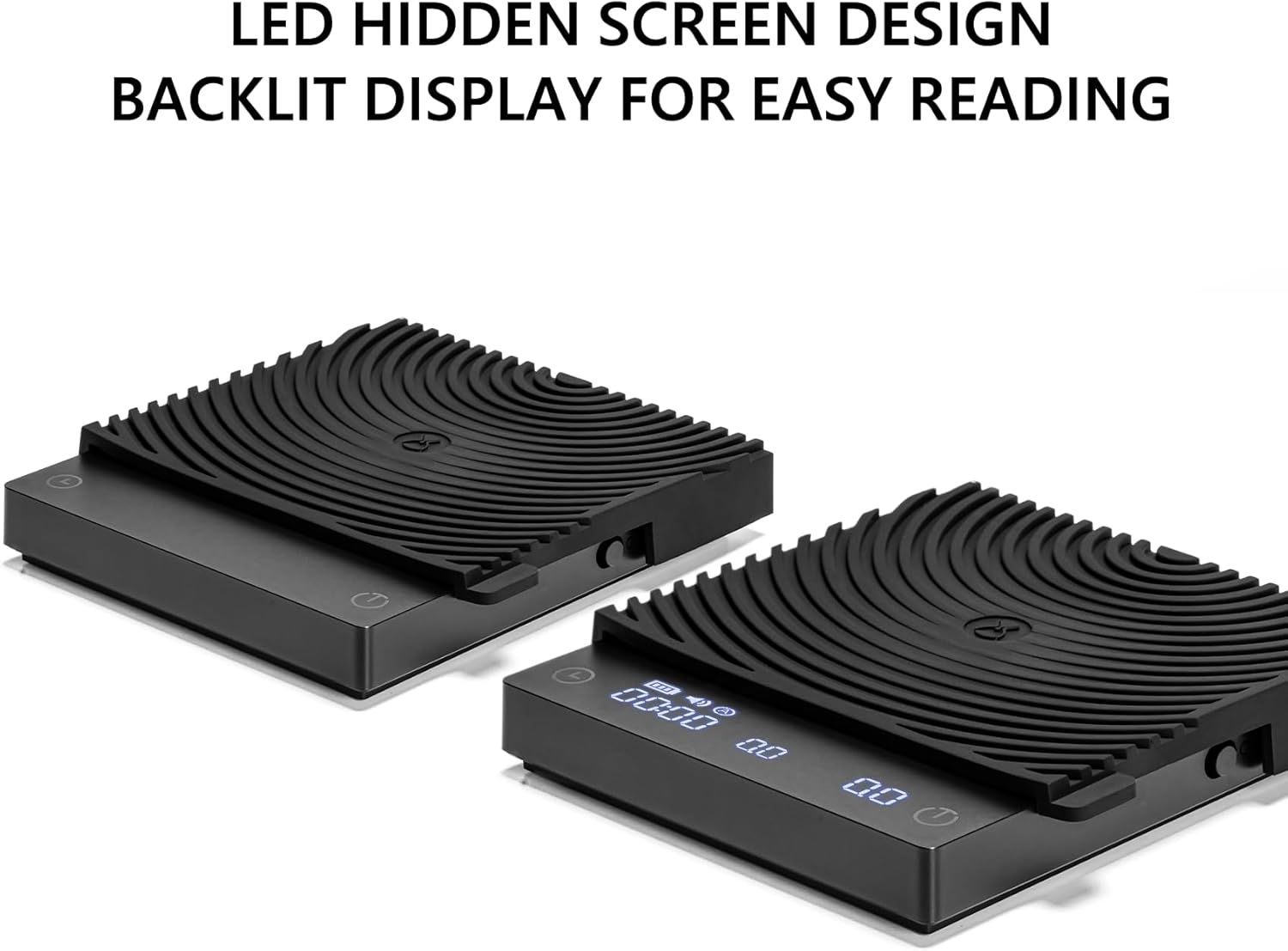 - [ Portable Slim Coffee Scale ] Basic mini coffee scale body is only 1.58cm thick and weighs only 192g, ultra-small body, very convenient to travel and carry, truly lightweight and retain all the features of Basic Plus