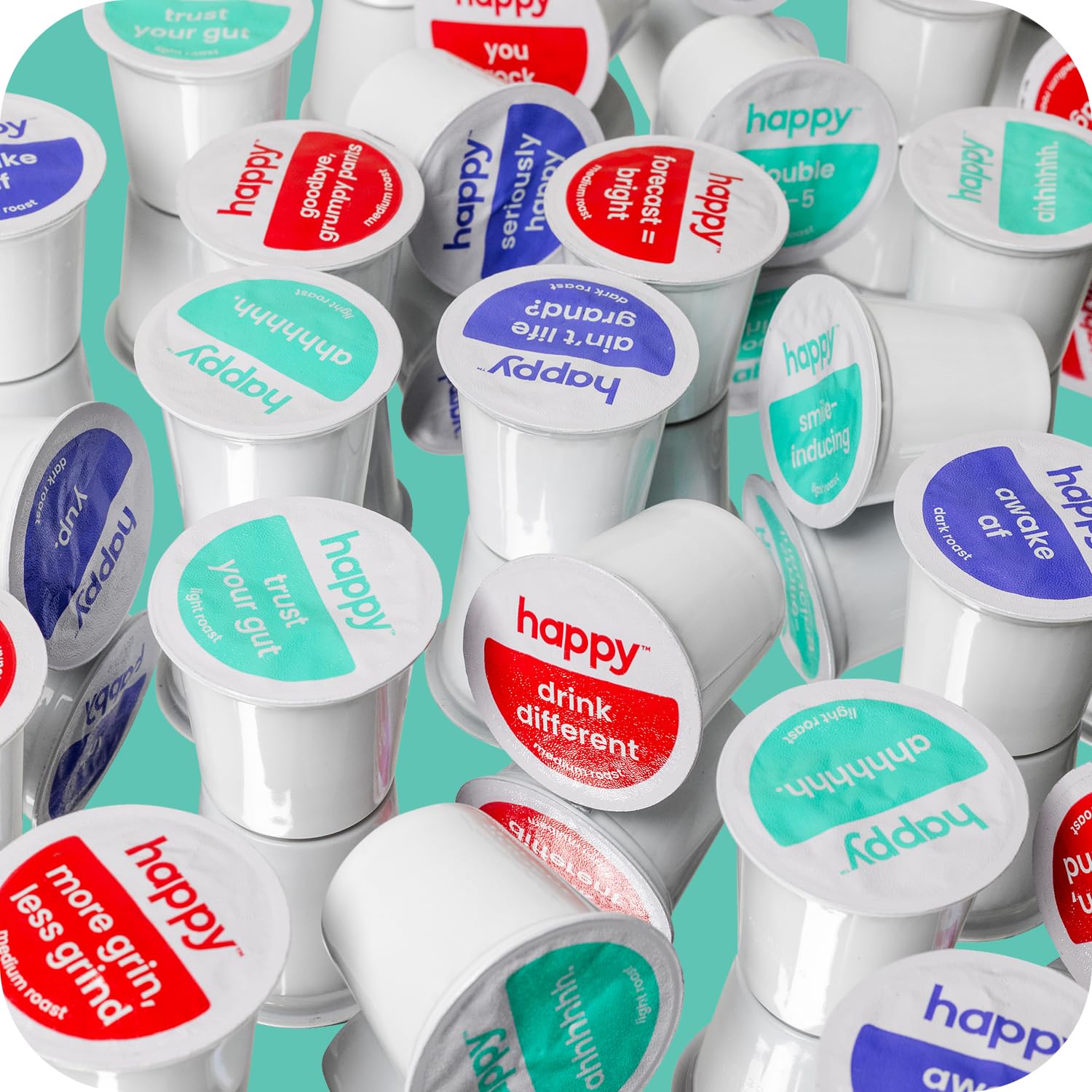 - seriously delicious: start your morning off right with happy’s extraordinary light roast coffee pods, thoughtfully sourced and expertly blended with notes of toasted biscotti and levity.