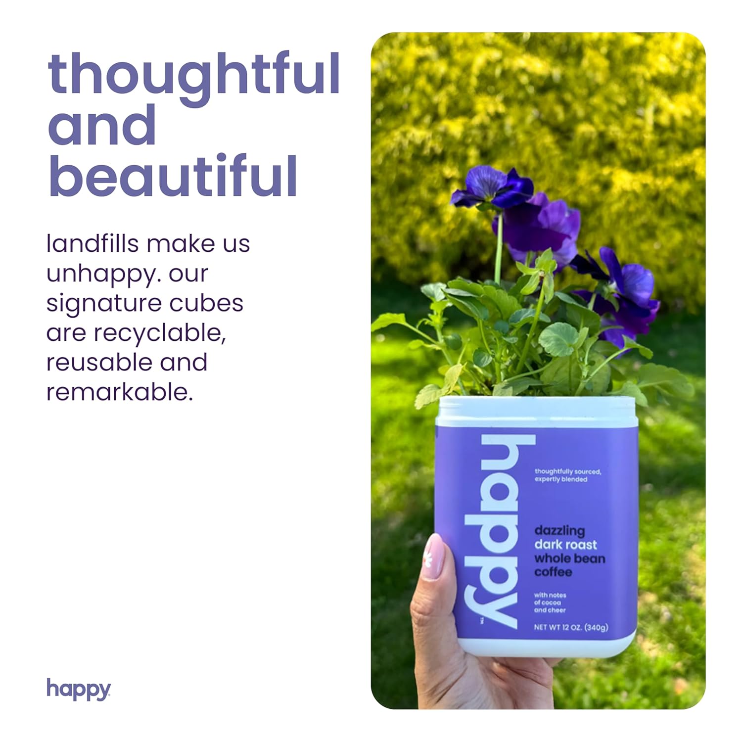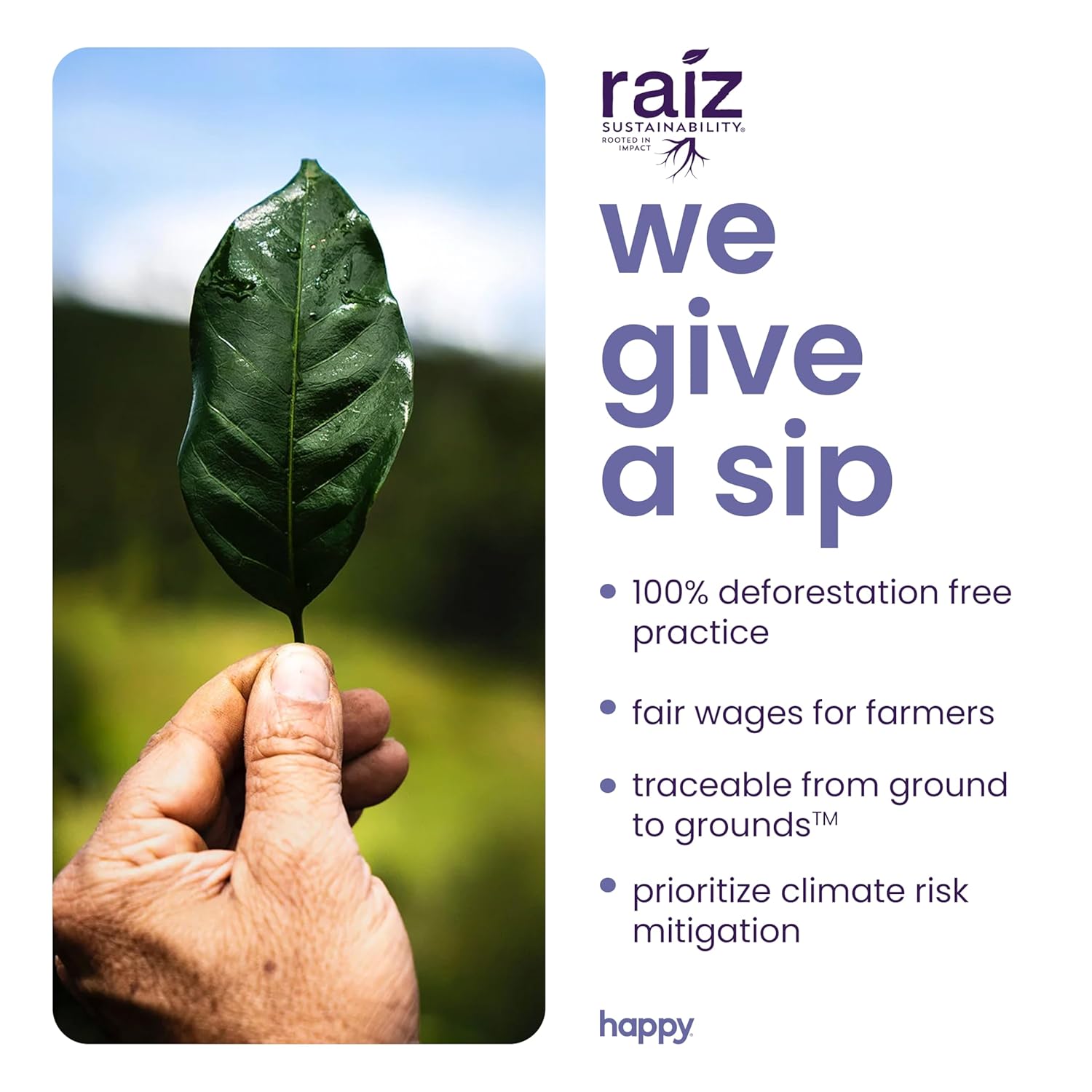- seriously delicious: start your morning off right with happy’s astonishing dark roast coffee pods, thoughtfully sourced and expertly blended with notes of cocoa and contentment.