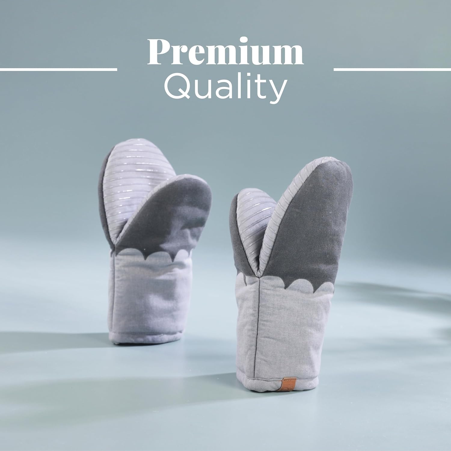 - [ NON SLIP SILICON GRIP ] - The grey oven mitts cute are crafted with a silicon layering that gives them a firm & secure grip while handling pots and pans or using them as apartment essentials when you move in. The waterproof silicone material is not affected by steam or hot liquids so your kitchen counters stay dry and protected. The silicon is food grade & BPA free.