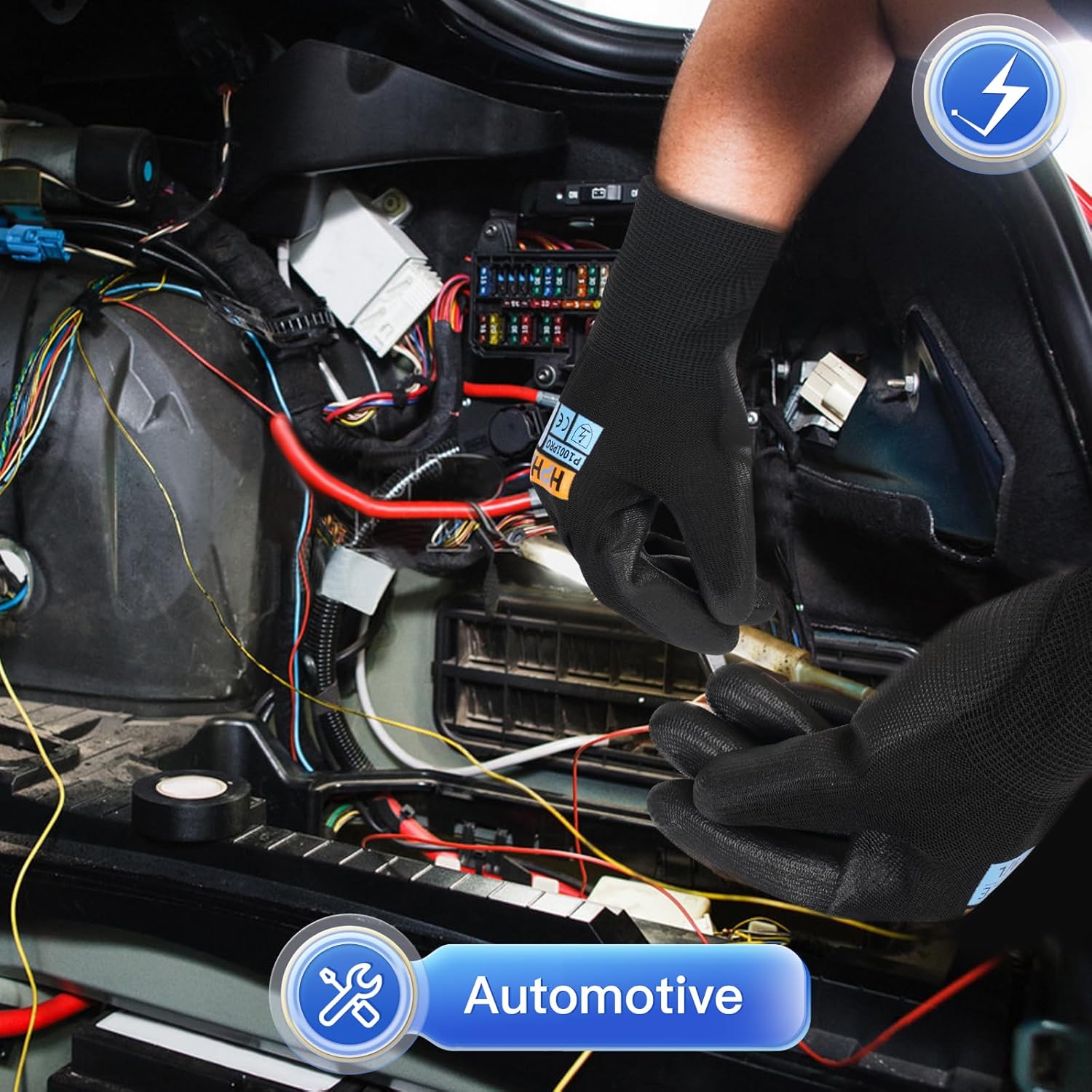 • 👏ANTI-STATIC GLOVES: Pull On closure. Operating touch screen phone or device without removing the working gloves. Dense carbon fiber provide strong anti-static ability, Finger is coated with polyurethane provides maximum grip and accuracy.