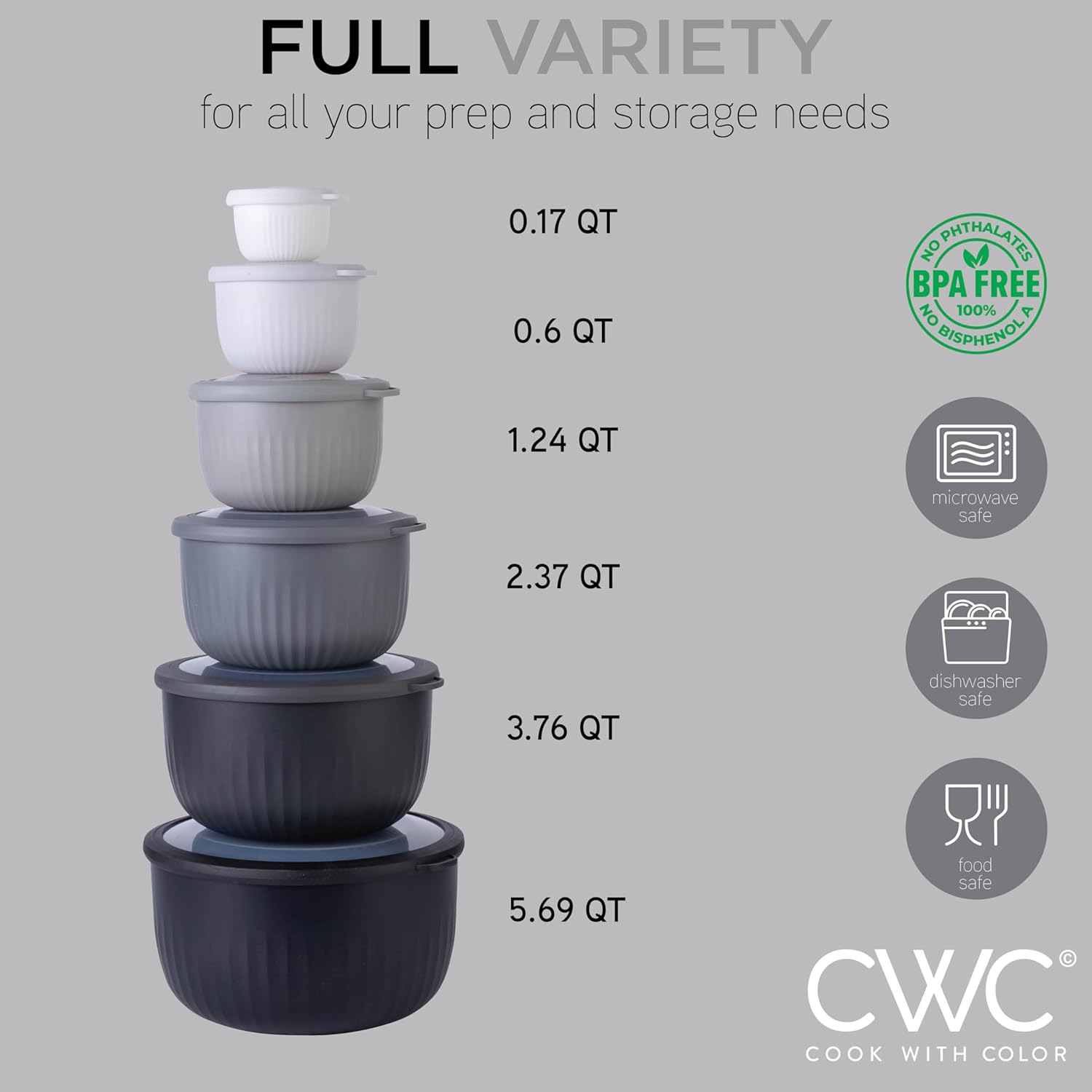 COOK WITH COLOR Prep Bowls with Lids- Wide and Deep Nesting Plastic Small Mixing Bowl Set with Lids, 12 Piece Set - Deep Bowls, Black/White